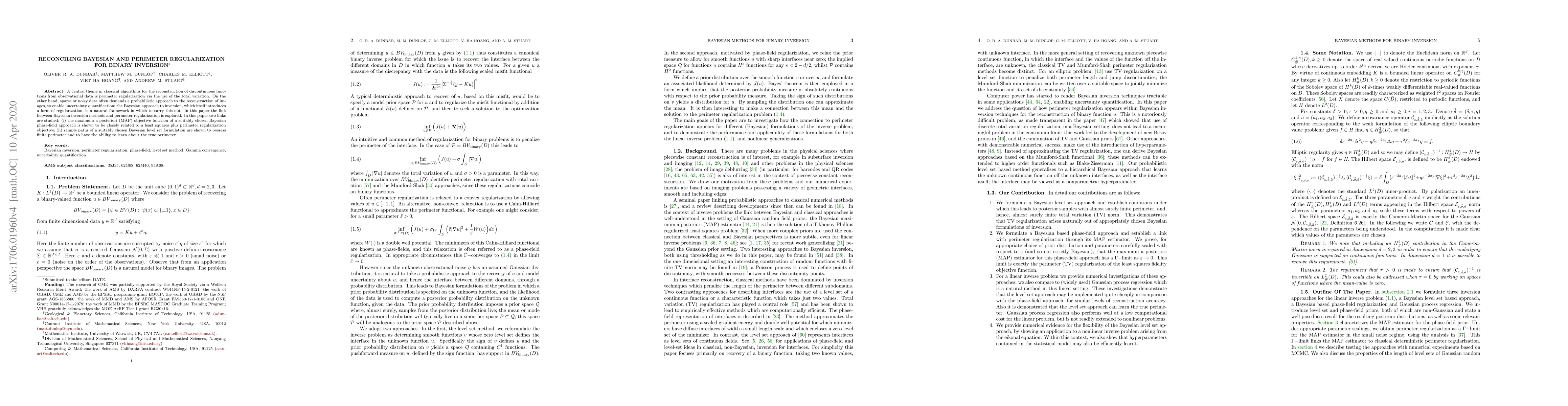A central theme in classical algorithms for the reconstruction of discontinuous functions from observational data is perimeter regularization via the use of the total variation. On the other hand, sparse or noisy data often demands a probabilistic approach to the reconstruction of images, to enable uncertainty quantification; the Bayesian approach to inversion, which itself introduces a form of regularization, is a natural framework in which to carry this out. In this paper the link between Bayesian inversion methods and perimeter regularization is explored. In this paper two links are studied: (i) the maximum a posteriori (MAP) objective function of a suitably chosen Bayesian phase-field approach is shown to be closely related to a least squares plus perimeter regularization objective; (ii) sample paths of a suitably chosen Bayesian level set formulation are shown to possess finite perimeter and to have the ability to learn about the true perimeter.
