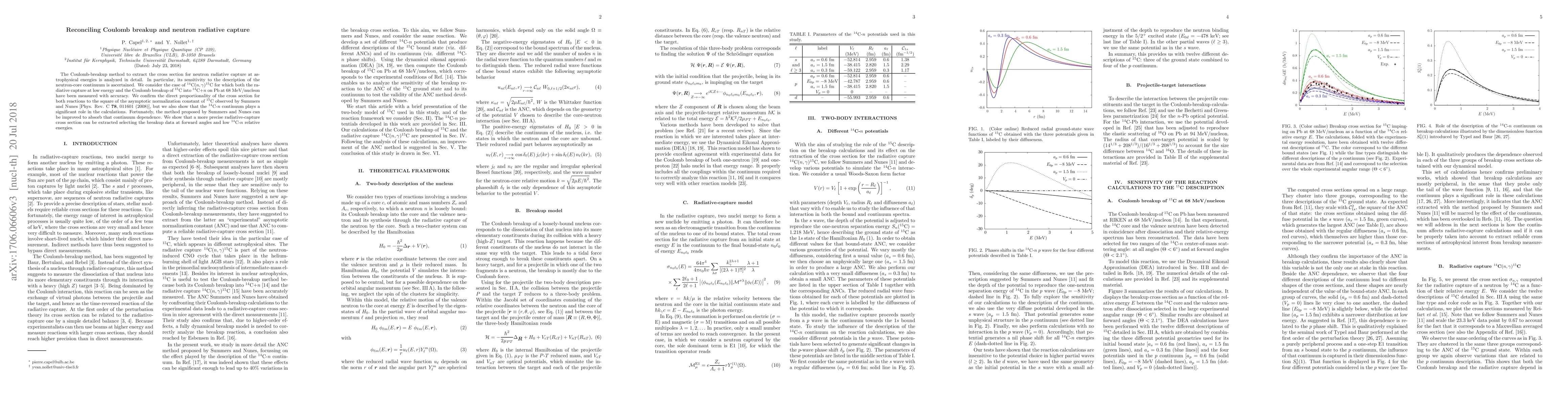 The Coulomb-breakup method to extract the cross section for neutron radiative capture at astrophysical energies is analyzed in detail. In particular, its sensitivity to the description of the neutron-core continuum is ascertained. We consider the case of 14C(n, $\gamma$)15C for which both the radiative capture at low energy and the Coulomb breakup of 15C into 14C+n on Pb at 68 MeV/nucleon have been measured with accuracy. We confirm the direct proportionality of the cross section for both reactions to the square of the asymptotic normalization constant of 15C observed by Summers and Nunes [Phys. Rev. C 78, 011601 (2008)], but we also show that the 14C-n continuum plays a significant role in the calculations. Fortunately, the method proposed by Summers and Nunes can be improved to absorb that continuum dependence. We show that a more precise radiative-capture cross section can be extracted selecting the breakup data at forward angles and low 14C-n relative energies.
