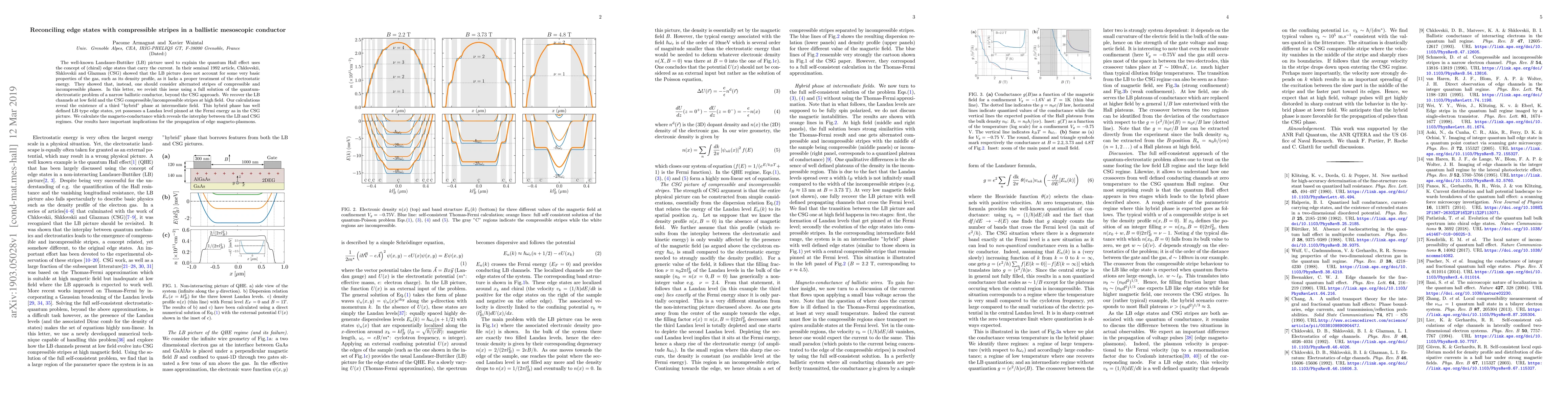 The well-known Landauer-Buttiker (LB) picture used to explain the quantum Hall effect uses the concept of (chiral) edge states that carry the current. In their seminal 1992 article, Chklovskii, Shklovskii and Glazman (CSG) showed that the LB picture does not account for some very basic properties of the gas, such as its density profile, as it lacks a proper treatment of the electrostatic energy. They showed that, instead, one should consider alternated stripes of compressible and incompressible phases. In this letter, we revisit this issue using a full solution of the quantum-electrostatic problem of a narrow ballistic conductor, beyond the CSG approach. We recover the LB channels at low field and the CSG compressible/incompressible stripes at high field. Our calculations reveal the existence of a third "hybrid" phase at intermediate field. This hybrid phase has well defined LB type edge states, yet possesses a Landau level pinned at the Fermi energy as in the CSG picture. We calculate the magneto-conductance which reveals the interplay between the LB and CSG regimes. Our results have important implications for the propagation of edge magneto-plasmons.
