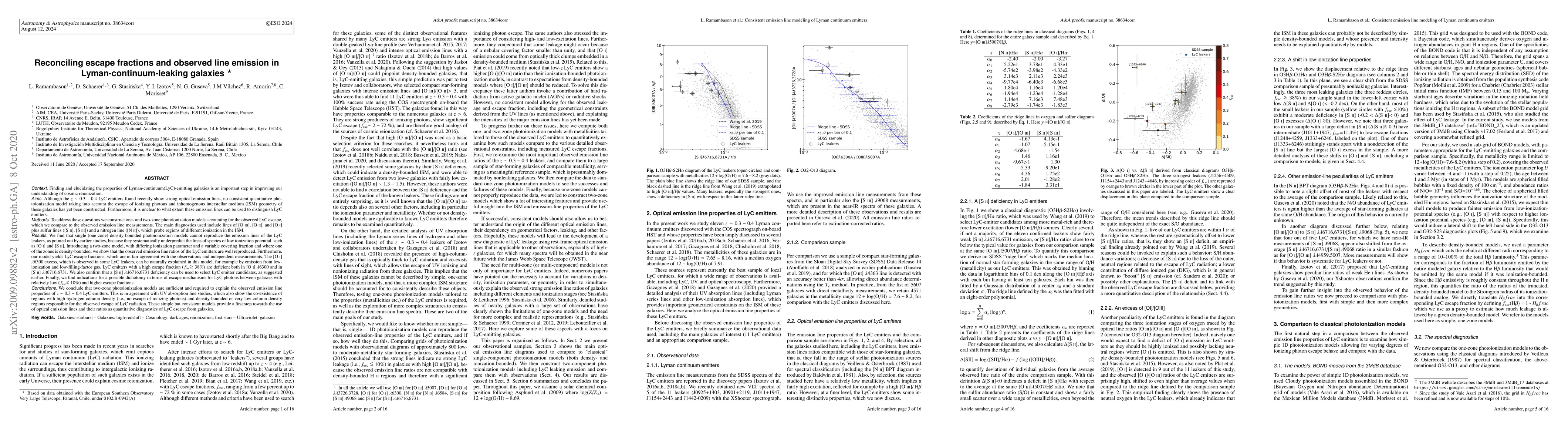 This paper constructs one- and two-zone photoionization models to reconcile the escape fractions of Lyman-continuum photons and observed emission lines in galaxies. It finds that two-zone models better reproduce the observed emission lines, especially for low ionization potential species, and suggest a possible dichotomy in escape mechanisms for Lyman-continuum photons based on escape fraction.