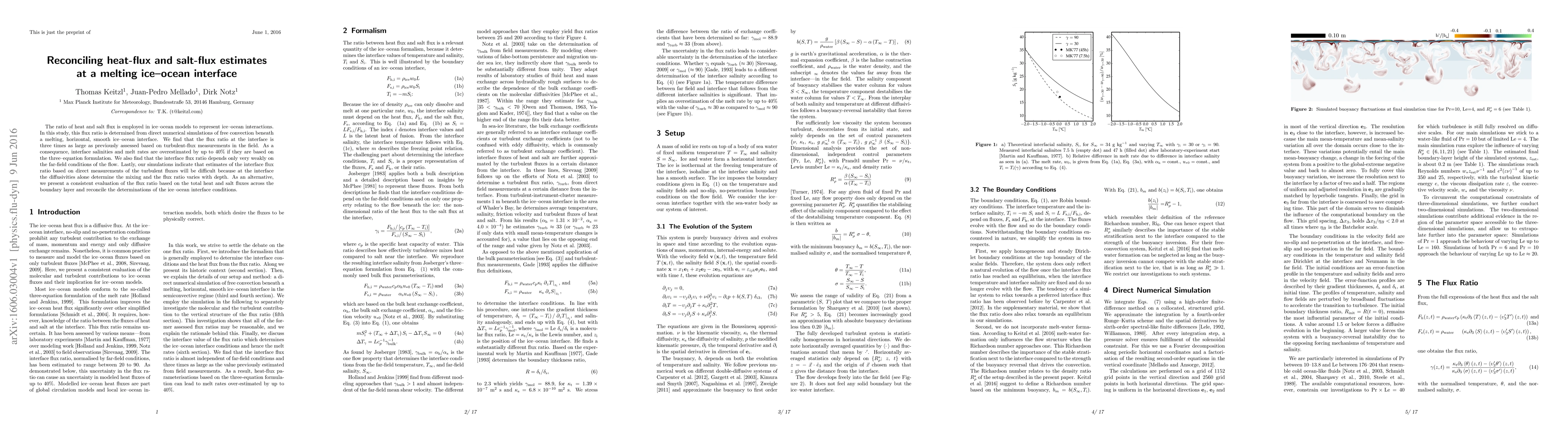 The ratio of heat and salt flux is employed in ice-ocean models to represent ice-ocean interactions. In this study, this flux ratio is determined from direct numerical simulations of free convection beneath a melting, horizontal, smooth ice-ocean interface. We find that the flux ratio at the interface is three times as large as previously assessed based on turbulent-flux measurements in the field. As a consequence, interface salinities and melt rates are overestimated by up to 40\% if they are based on the three-equation formulation. We also find that the interface flux ratio depends only very weakly on the far-field conditions of the flow. Lastly, our simulations indicate that estimates of the interface flux ratio based on direct measurements of the turbulent fluxes will be difficult because at the interface the diffusivities alone determine the mixing and the flux ratio varies with depth. As an alternative, we present a consistent evaluation of the flux ratio based on the total heat and salt fluxes across the boundary layer and reconcile the determinations of the ice-ocean interface conditions.