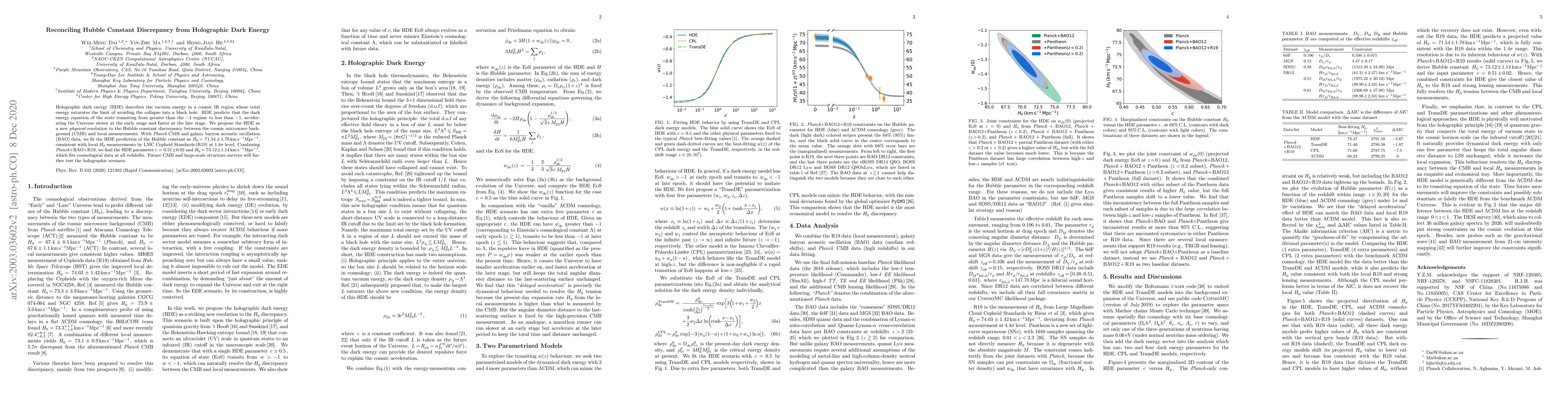 This paper proposes holographic dark energy (HDE) as a solution to the Hubble constant discrepancy, fitting HDE predictions to Planck CMB and BAO data, yielding $H_0 = 71.54\pm1.78\,\mathrm{km\,s^{-1} Mpc^{-1}}$, which aligns with local measurements at a $1.4\sigma$ level. The HDE parameter $c=0.51\pm0.02$ and $H_0 = 73.12\pm 1.14\,\mathrm{km \,s^{-1} Mpc^{-1}}$ fit cosmological data across all redshifts.