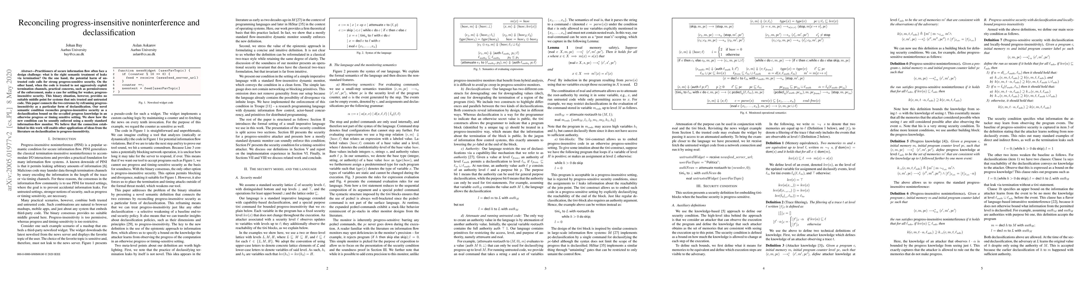 This paper proposes a novel semantic condition that reconciles progress-insensitive noninterference with declassification, providing a middle ground for systems with both trusted and untrusted code. It demonstrates how this condition can be enforced using a standard information-flow monitor.