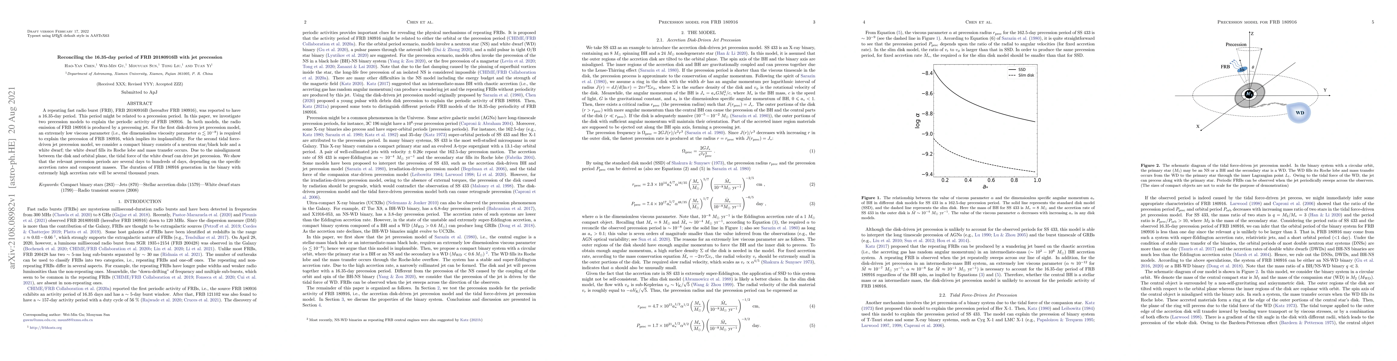 Researchers investigate two jet precession models to explain the 16.35-day periodic activity of FRB 20180916B, finding that a tidal force-driven model is more plausible due to its ability to produce relevant precession periods.