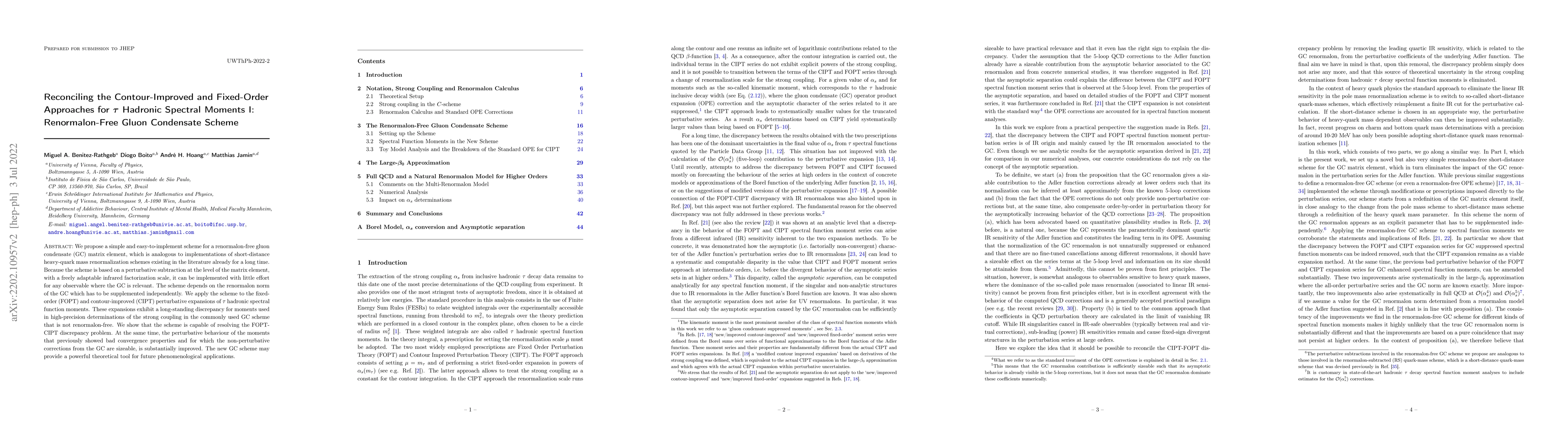 This paper proposes a new renormalon-free gluon condensate scheme to reconcile discrepancies between fixed-order and contour-improved perturbative expansions for $\tau$ hadronic spectral moments, significantly improving convergence and non-perturbative correction handling. The scheme is adaptable and based on perturbative subtraction with an infrared factorization scale.