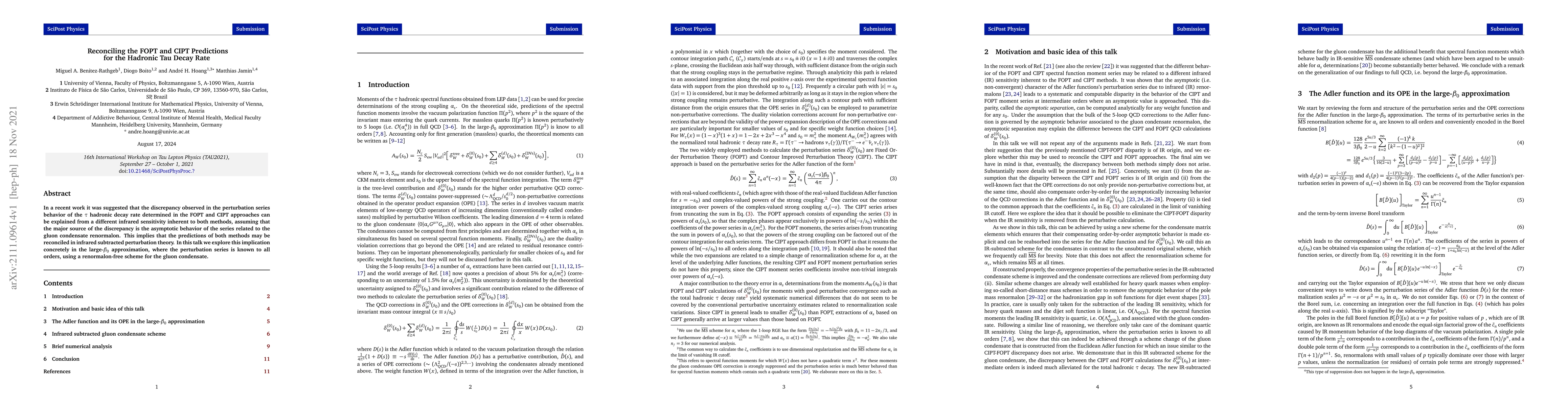 This research has important implications for our understanding of hadronic tau decays and the behavior of infrared renormalons in QCD.