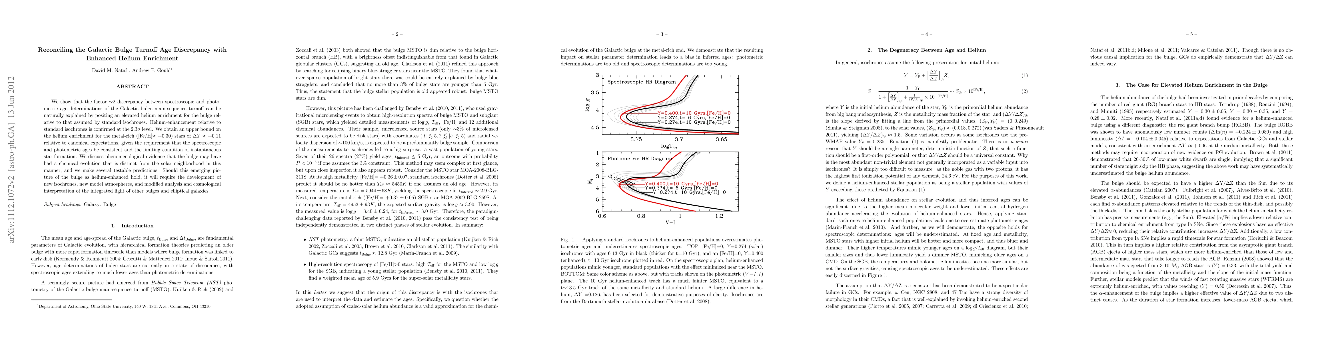 This paper reconciles the age discrepancy in the Galactic bulge's main-sequence turnoff by proposing enhanced helium enrichment, suggesting an upper bound of ${\Delta}Y/{\Delta}Z_{\rm{Bulge}} \lesssim 5.0$ for consistency with spectroscopic and photometric ages, and predicting a mean bulge age of $t_{\rm{Bulge}} \approx 10$ Gyr.