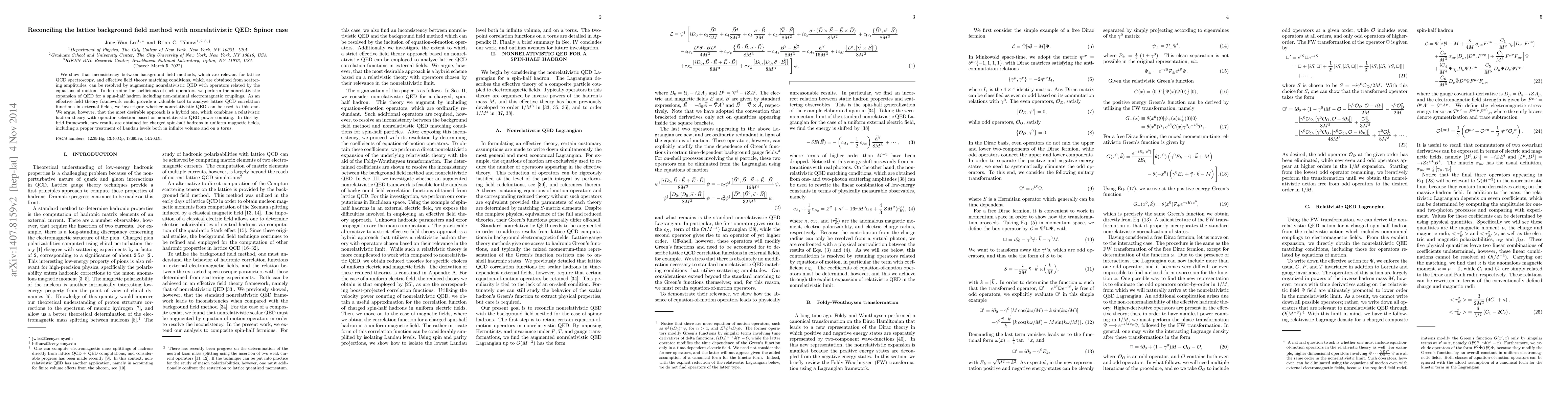 This paper resolves inconsistencies between lattice QCD spectroscopy and effective field theory matching by augmenting nonrelativistic QED with operators derived from the equations of motion. It proposes a hybrid framework combining relativistic hadron theory with nonrelativistic QED power counting for analyzing lattice QCD correlation functions in external fields.
