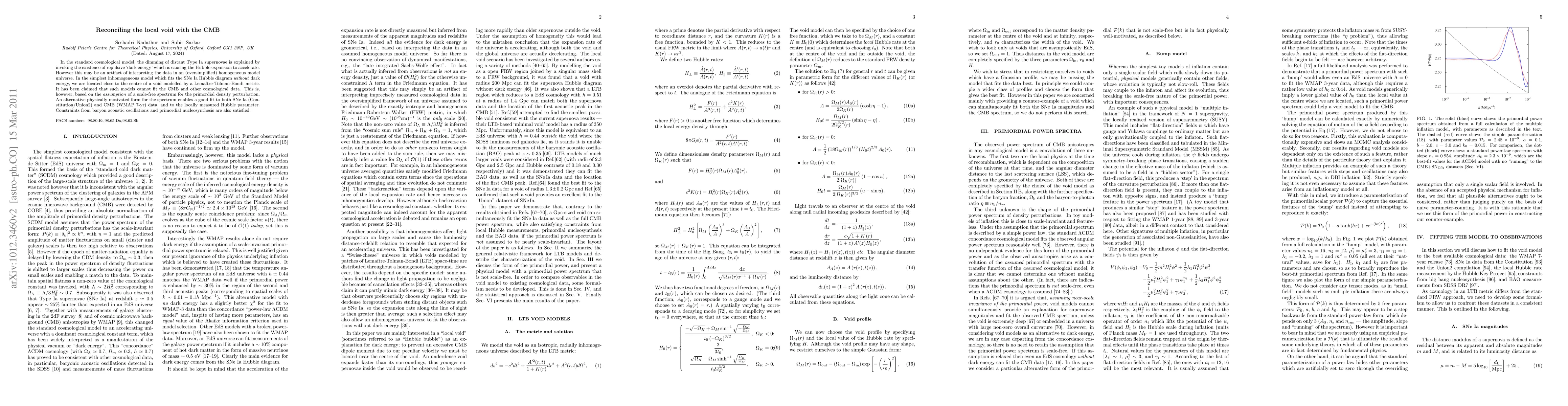 In the standard cosmological model, the dimming of distant Type Ia supernovae is explained by invoking the existence of repulsive `dark energy' which is causing the Hubble expansion to accelerate. However this may be an artifact of interpreting the data in an (oversimplified) homogeneous model universe. In the simplest inhomogeneous model which fits the SNe Ia Hubble diagram without dark energy, we are located close to the centre of a void modelled by a Lema\'itre-Tolman-Bondi metric. It has been claimed that such models cannot fit the CMB and other cosmological data. This is however based on the assumption of a scale-free spectrum for the primordial density perturbation. An alternative physically motivated form for the spectrum enables a good fit to both SNe Ia (Constitution/Union2) and CMB (WMAP 7-yr) data, and to the locally measured Hubble parameter. Constraints from baryon acoustic oscillations and primordial nucleosynthesis are also satisfied.