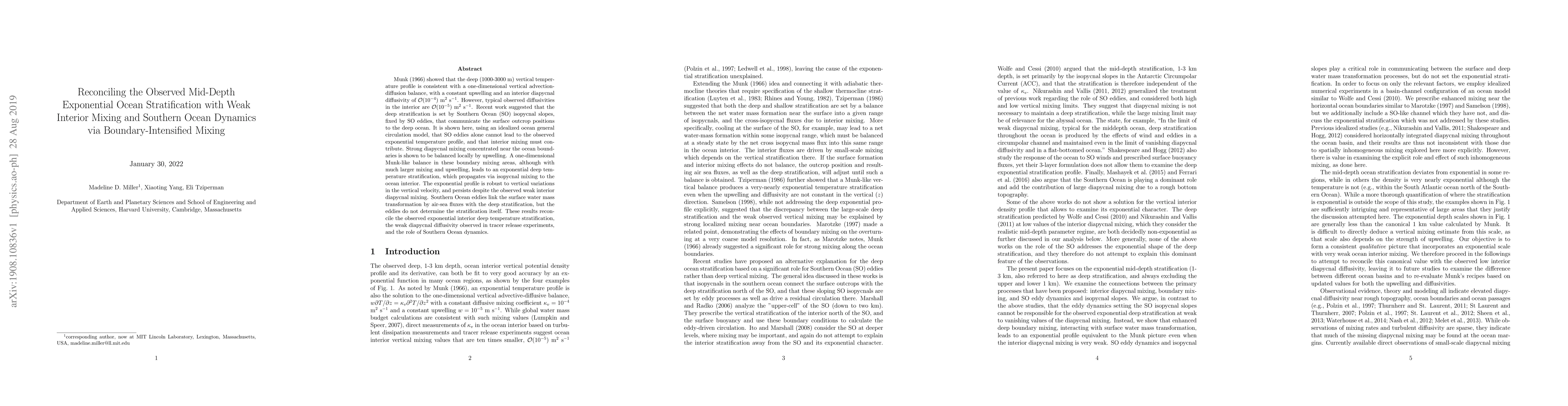 Researchers found that strong diapycnal mixing near ocean boundaries, combined with Southern Ocean dynamics, can explain the observed exponential temperature profile in the deep ocean, reconciling existing observations of weak interior mixing.
