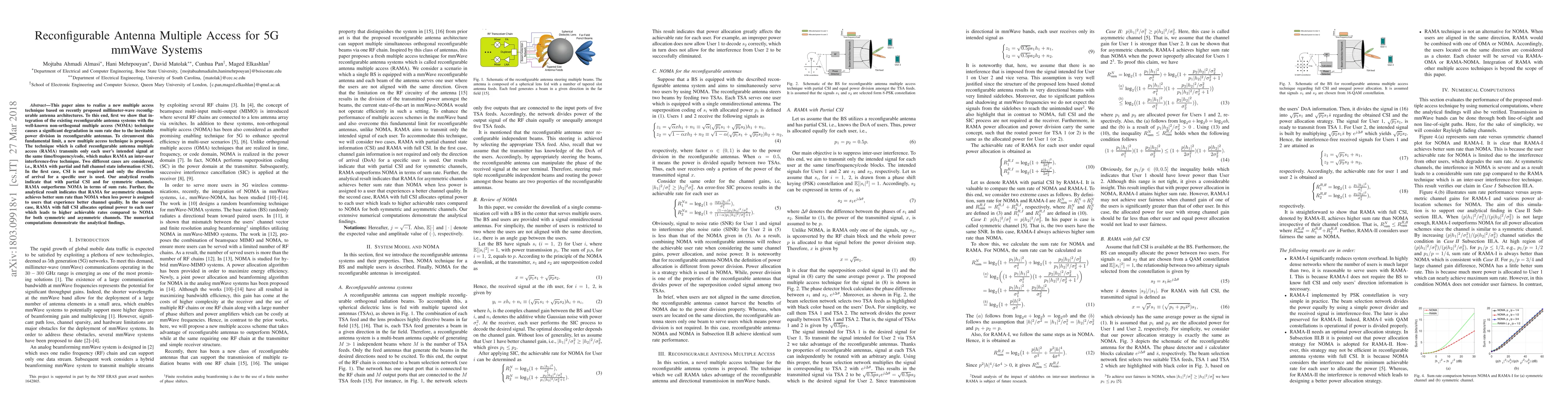 This paper proposes a new multiple access technique called reconfigurable antenna multiple access (RAMA) for 5G mmWave systems, which aims to overcome the limitations of integrating reconfigurable antennas with non-orthogonal multiple access (NOMA). RAMA achieves inter-user interference-free communication by transmitting each user's intended signal simultaneously, outperforming NOMA in terms of sum rate under both partial and full channel state information scenarios.