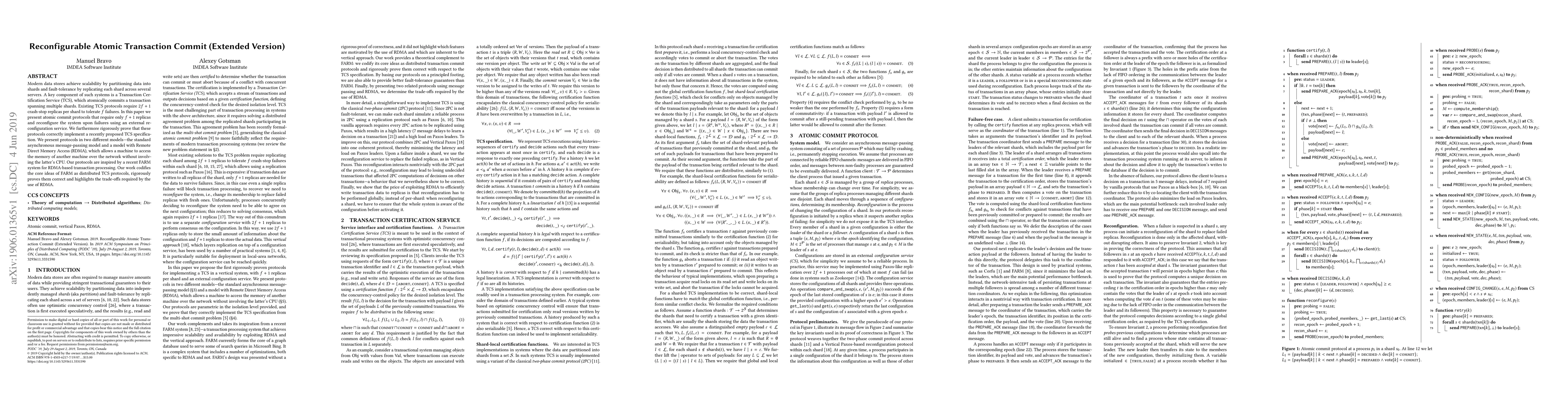 This paper proposes atomic commit protocols requiring fewer replicas to achieve fault-tolerance in distributed data stores, utilizing a reconfiguration service for failures. It rigorously proves the correctness of these protocols in both asynchronous message-passing and RDMA models, highlighting the trade-offs of using RDMA.