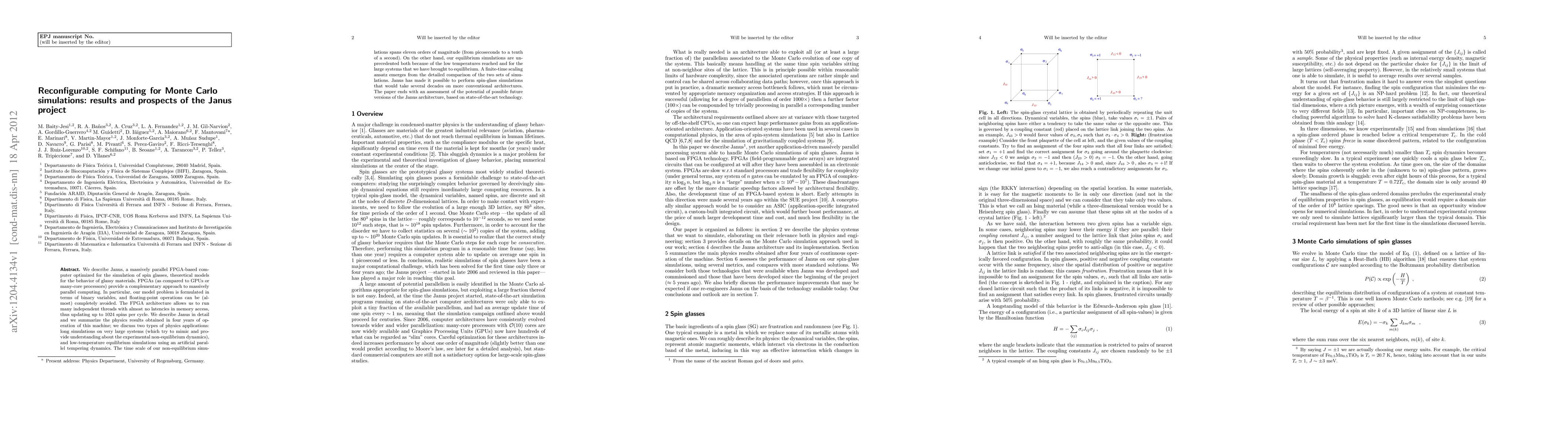 We describe Janus, a massively parallel FPGA-based computer optimized for the simulation of spin glasses, theoretical models for the behavior of glassy materials. FPGAs (as compared to GPUs or many-core processors) provide a complementary approach to massively parallel computing. In particular, our model problem is formulated in terms of binary variables, and floating-point operations can be (almost) completely avoided. The FPGA architecture allows us to run many independent threads with almost no latencies in memory access, thus updating up to 1024 spins per cycle. We describe Janus in detail and we summarize the physics results obtained in four years of operation of this machine; we discuss two types of physics applications: long simulations on very large systems (which try to mimic and provide understanding about the experimental non-equilibrium dynamics), and low-temperature equilibrium simulations using an artificial parallel tempering dynamics. The time scale of our non-equilibrium simulations spans eleven orders of magnitude (from picoseconds to a tenth of a second). On the other hand, our equilibrium simulations are unprecedented both because of the low temperatures reached and for the large systems that we have brought to equilibrium. A finite-time scaling ansatz emerges from the detailed comparison of the two sets of simulations. Janus has made it possible to perform spin-glass simulations that would take several decades on more conventional architectures. The paper ends with an assessment of the potential of possible future versions of the Janus architecture, based on state-of-the-art technology.