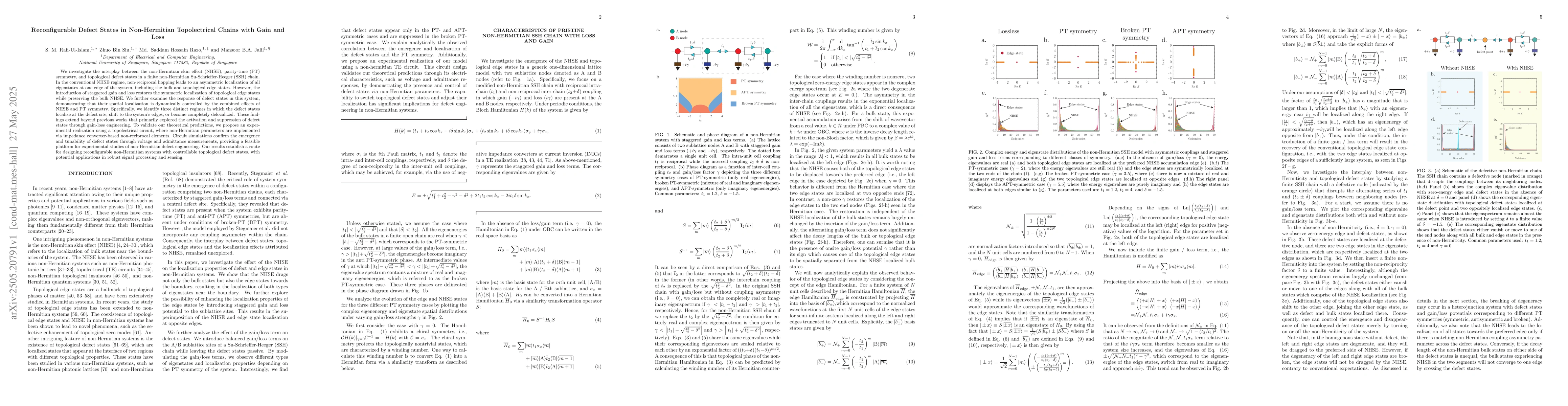 Researchers discovered a way to control the localization of topological defect states in non-Hermitian chains with gain and loss, enabling the design of reconfigurable systems for robust signal processing and sensing.