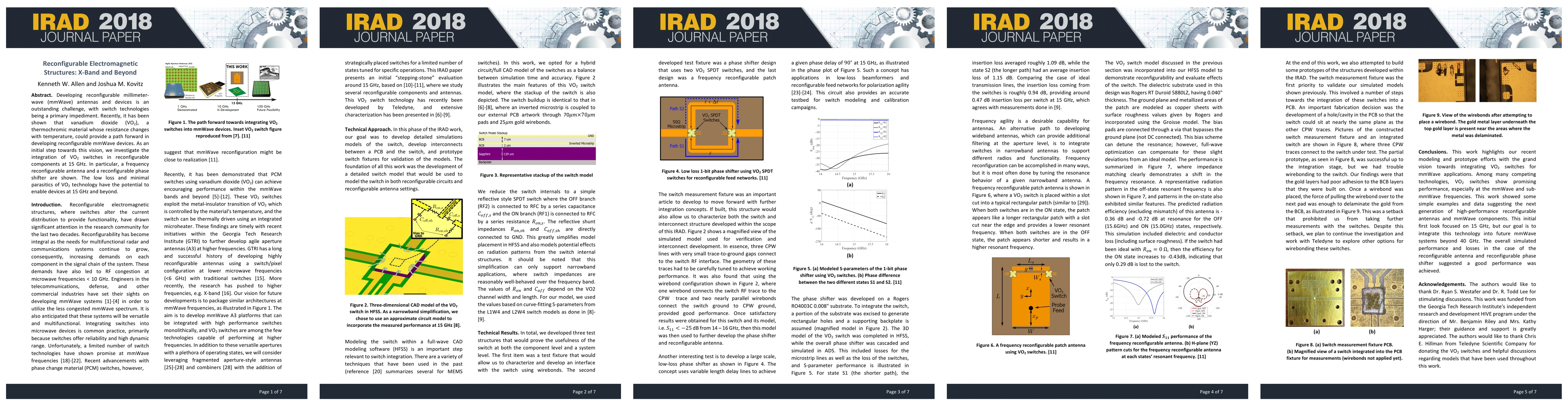 This research explores the use of vanadium dioxide (VO2), a temperature-sensitive material, to create reconfigurable millimeter-wave (mmWave) devices. The study successfully demonstrates a frequency reconfigurable antenna and a reconfigurable phase shifter at 15 GHz, highlighting VO2's potential for low-loss, minimal-parasitic devices at higher frequencies too.