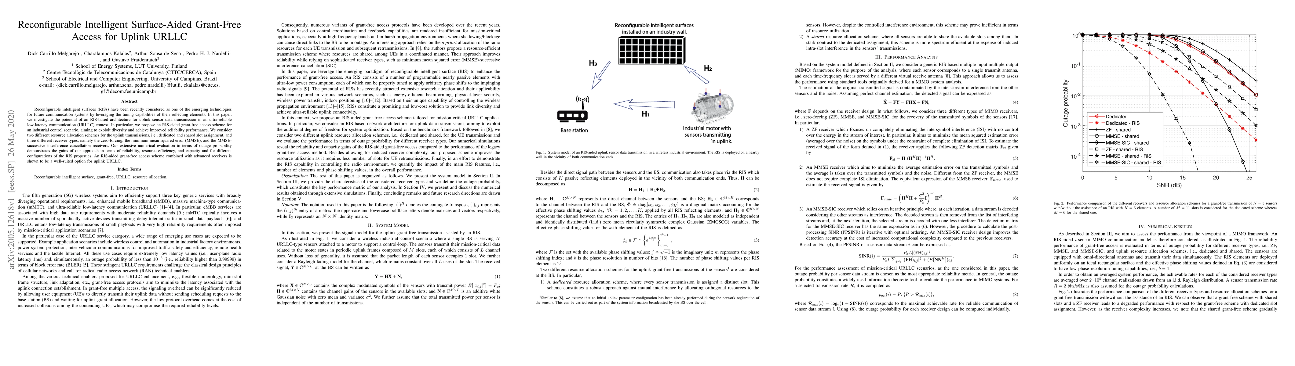 This paper explores an RIS-based architecture for uplink sensor data transmission in ultra-reliable low-latency communication (URLLC) scenarios, proposing an RIS-aided grant-free access scheme to enhance reliability. Numerical evaluations show improved reliability, resource efficiency, and capacity through various resource allocation and receiver configurations.
