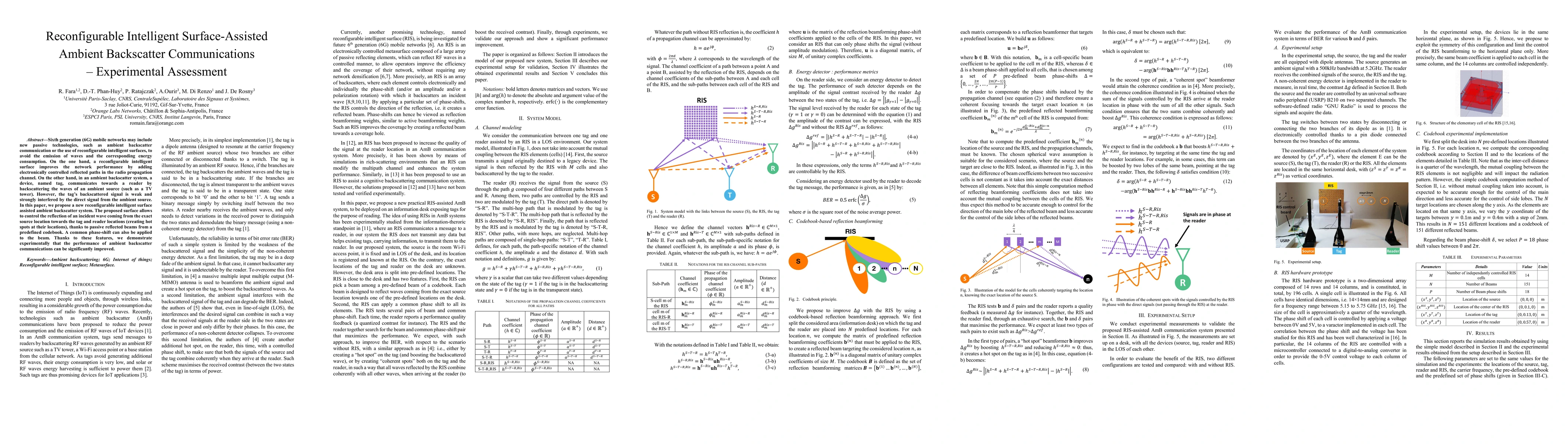 Sixth generation (6G) mobile networks may include new passive technologies, such as ambient backscatter communication or the use of reconfigurable intelligent surfaces, to avoid the emission of waves and the corresponding energy consumption. On the one hand, a reconfigurable intelligent surface improves the network performance by adding electronically controlled reflected paths in the radio propagation channel. On the other hand, in an ambient backscatter system, a device, named tag, communicates towards a reader by backscattering the waves of an ambient source (such as a TV tower). However, the tag's backscattered signal is weak and strongly interfered by the direct signal from the ambient source. In this paper, we propose a new reconfigurable intelligent surface assisted ambient backscatter system. The proposed surface allows to control the reflection of an incident wave coming from the exact source location towards the tag and reader locations (creating hot spots at their locations), thanks to passive reflected beams from a predefined codebook. A common phase-shift can also be applied to the beam. Thanks to these features, we demonstrate experimentally that the performance of ambient backscatter communications can be significantly improved.