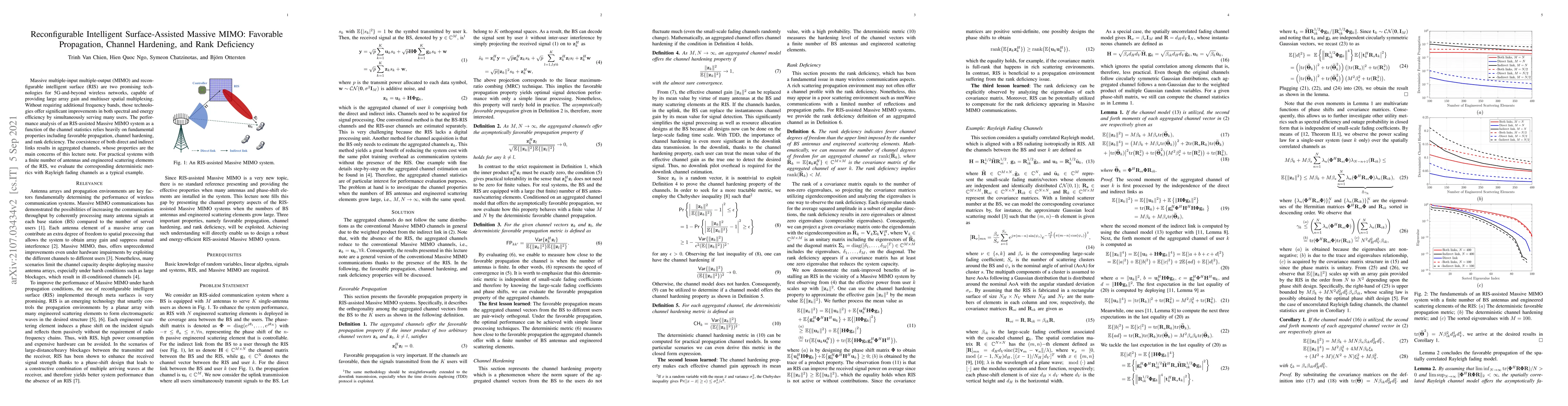 Massive multiple-input multiple-output (MIMO) and reconfigurable intelligent surface (RIS) are two promising technologies for 5G-and-beyond wireless networks, capable of providing large array gain and multiuser spatial multiplexing. Without requiring additional frequency bands, those technologies offer significant improvements in both spectral and energy efficiency by simultaneously serving many users. The performance analysis of an RIS-assisted Massive MIMO system as a function of the channel statistics relies heavily on fundamental properties including favorable propagation, channel hardening, and rank deficiency. The coexistence of both direct and indirect links results in aggregated channels, whose properties are the main concerns of this lecture note. For practical systems with a finite number of antennas and scattering elements of the RIS, we evaluate the corresponding deterministic metrics with Rayleigh fading channels as a typical example.