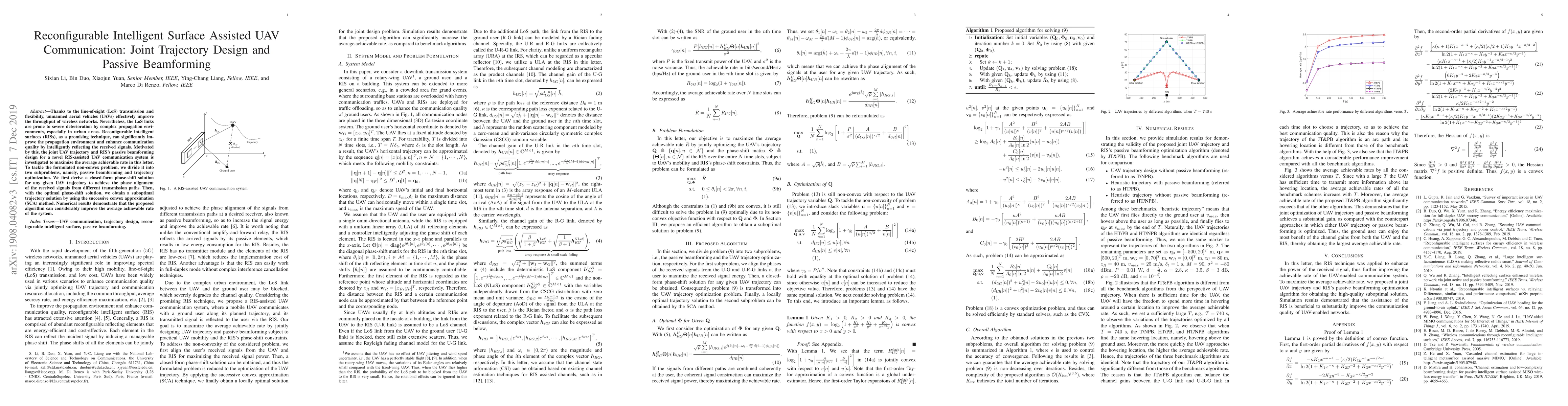 This paper investigates a novel RIS-assisted UAV communication system, focusing on joint UAV trajectory design and passive beamforming to maximize average achievable rate. The authors propose a method to tackle the non-convex problem by dividing it into passive beamforming and trajectory optimization, using closed-form phase-shift solutions and the successive convex approximation method, which significantly enhances communication quality.
