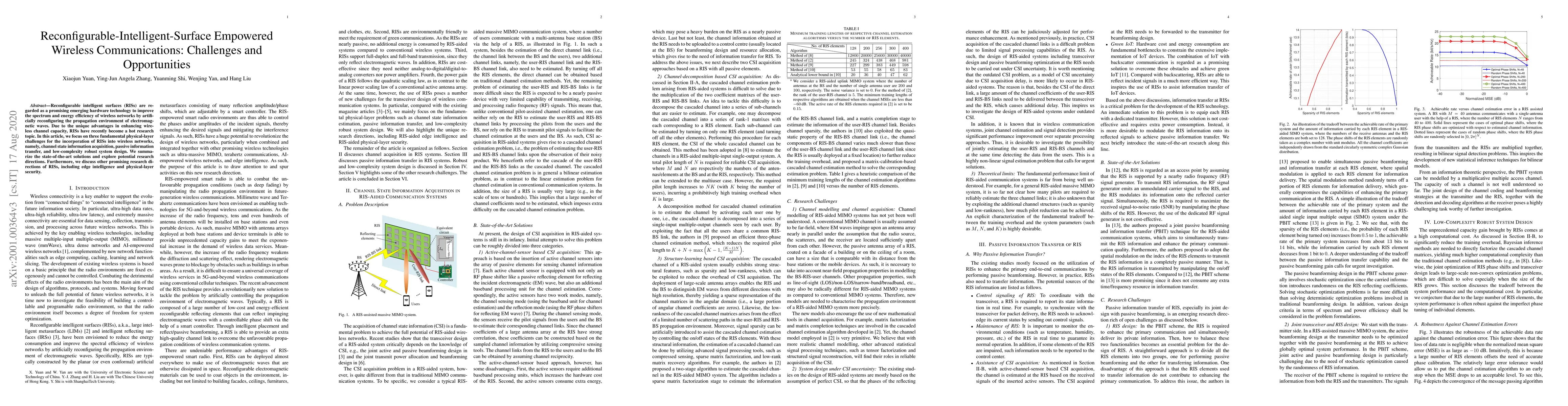 This paper explores the challenges and opportunities of incorporating reconfigurable intelligent surfaces (RISs) into wireless networks to enhance spectrum and energy efficiency. It addresses three key physical-layer challenges: channel state information acquisition, passive information transfer, and low-complexity robust system design, while also discussing future research directions in edge intelligence and physical-layer security.