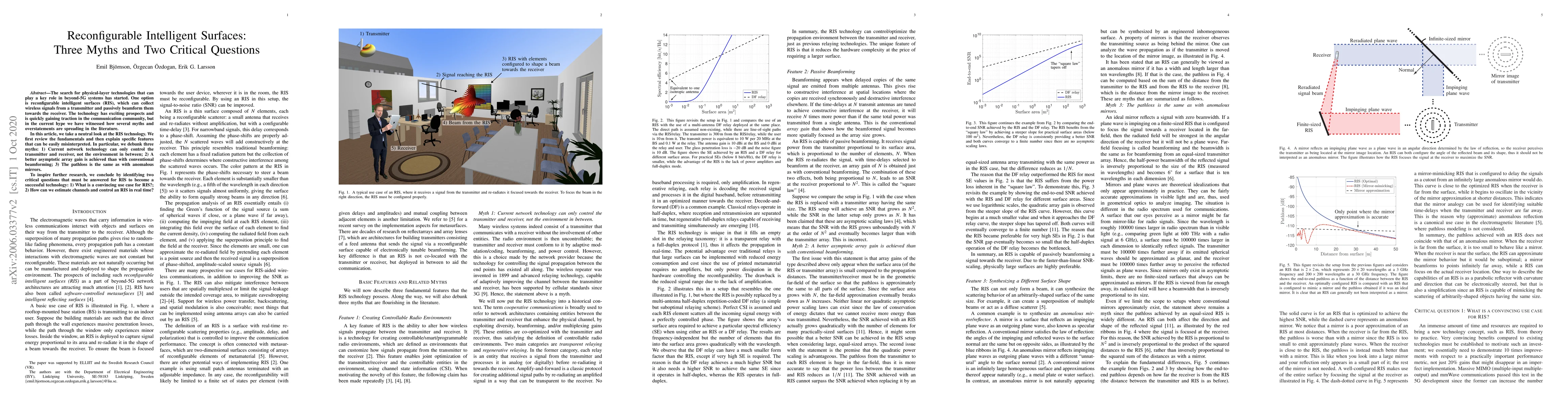 This paper critically examines reconfigurable intelligent surfaces (RIS) in beyond-5G systems, debunking three prevalent myths and highlighting two essential research questions for the technology's future: convincing use cases and real-time channel estimation and control.