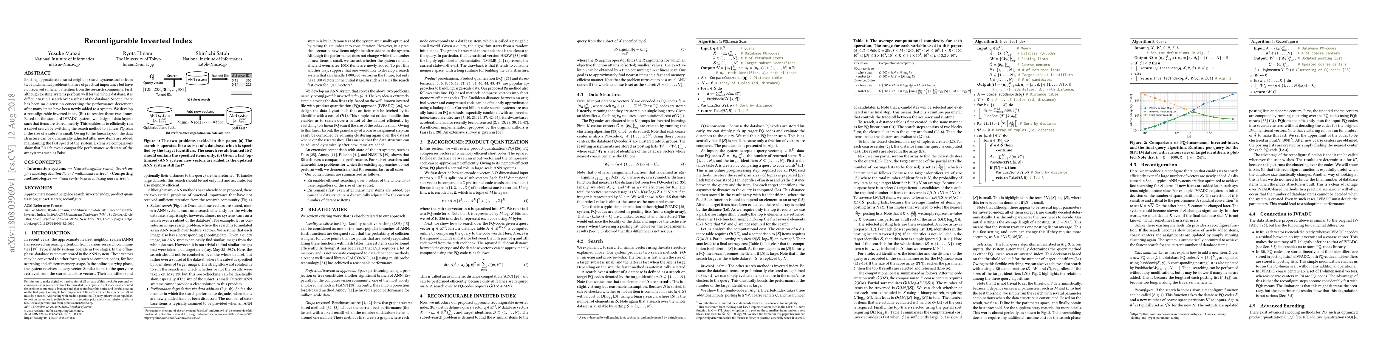 Existing approximate nearest neighbor search systems suffer from two fundamental problems that are of practical importance but have not received sufficient attention from the research community. First, although existing systems perform well for the whole database, it is difficult to run a search over a subset of the database. Second, there has been no discussion concerning the performance decrement after many items have been newly added to a system. We develop a reconfigurable inverted index (Rii) to resolve these two issues. Based on the standard IVFADC system, we design a data layout such that items are stored linearly. This enables us to efficiently run a subset search by switching the search method to a linear PQ scan if the size of a subset is small. Owing to the linear layout, the data structure can be dynamically adjusted after new items are added, maintaining the fast speed of the system. Extensive comparisons show that Rii achieves a comparable performance with state-of-the art systems such as Faiss.