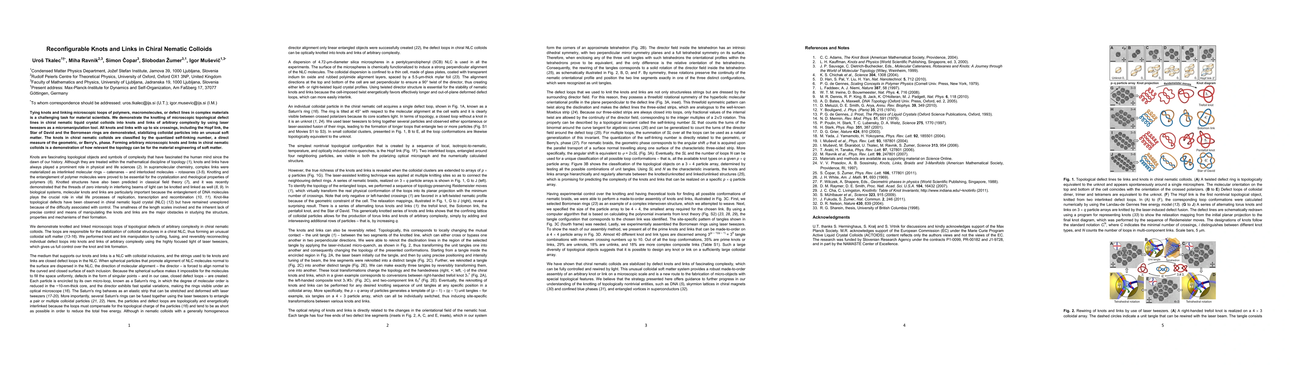 This paper demonstrates the creation of complex knots and links in chiral nematic liquid crystal colloids using laser tweezers, showcasing the potential of topological structures in material engineering. The study classifies these knots by their self-linking number, highlighting the significance of topology in soft matter.