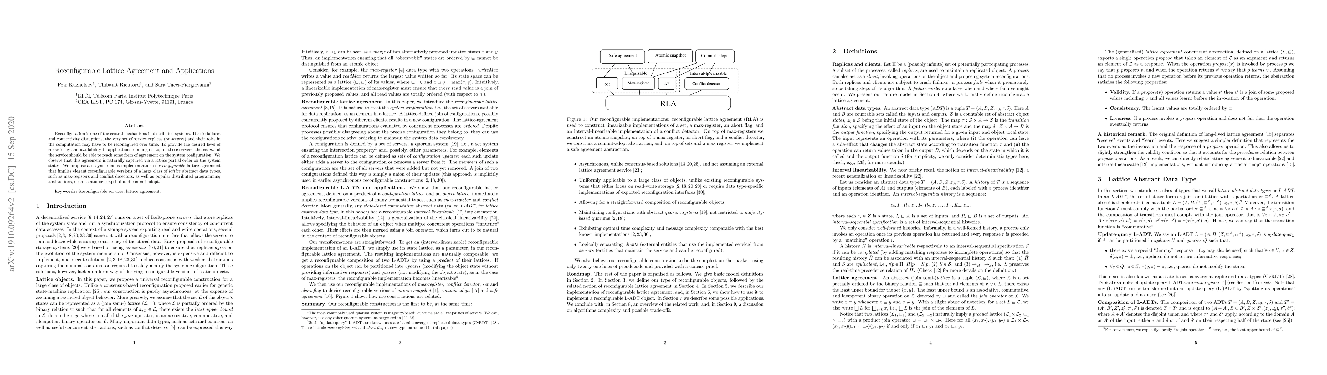 Reconfiguration is one of the central mechanisms in distributed systems. Due to failures and connectivity disruptions, the very set of service replicas (or servers) and their roles in the computation may have to be reconfigured over time. To provide the desired level of consistency and availability to applications running on top of these servers, the clients of the service should be able to reach some form of agreement on the system configuration. We observe that this agreement is naturally captured via a lattice partial order on the system states. We propose an asynchronous implementation of reconfigurable lattice agreement that implies elegant reconfigurable versions of a large class of lattice abstract data types, such as max-registers and conflict detectors, as well as popular distributed programming abstractions, such as atomic snapshot and commit-adopt.
