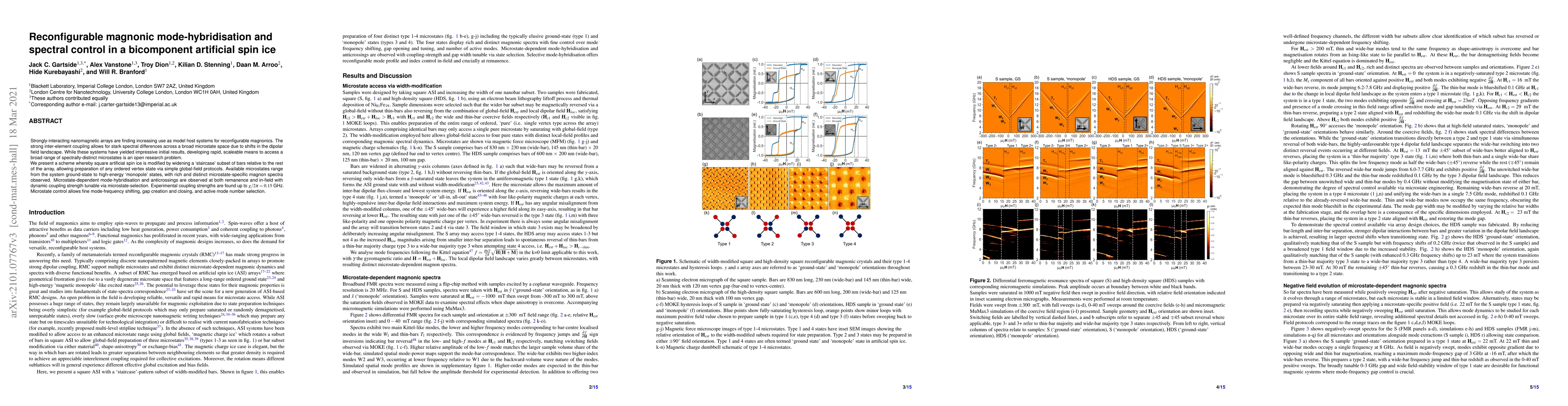 Strongly-interacting nanomagnetic arrays are finding increasing use as model host systems for reconfigurable magnonics. The strong inter-element coupling allows for stark spectral differences across a broad microstate space due to shifts in the dipolar field landscape. While these systems have yielded impressive initial results, developing rapid, scaleable means to access abroad range of spectrally-distinct microstates is an open research problem.We present a scheme whereby square artificial spin ice is modified by widening a 'staircase' subset of bars relative to the rest of the array, allowing preparation of any ordered vertex state via simple global-field protocols. Available microstates range from the system ground-state to high-energy 'monopole' states, with rich and distinct microstate-specific magnon spectra observed. Microstate-dependent mode-hybridisation and anticrossings are observed at both remanence and in-field with dynamic coupling strength tunable via microstate-selection. Experimental coupling strengths are found up to g / 2$\pi$ = 0.15 GHz. Microstate control allows fine mode-frequency shifting, gap creation and closing, and active mode number selection.