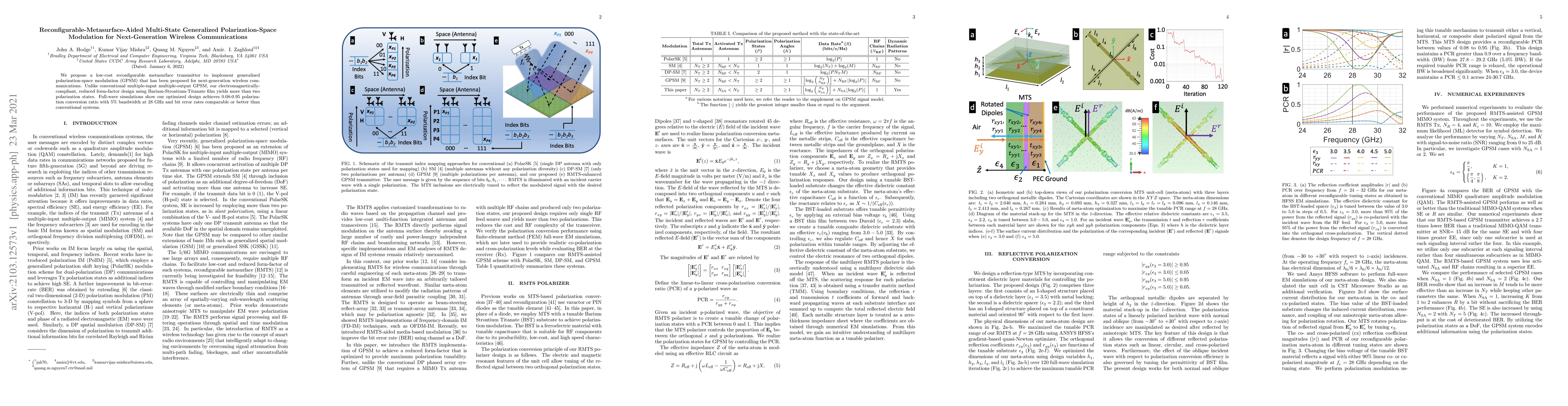 We propose a low-cost reconfigurable metasurface transmitter to implement generalized polarization-space modulation (GPSM) that has been proposed for next-generation wireless communications. Unlike conventional multiple-input multiple-output GPSM, our electromagnetically-compliant, reduced form-factor design using Barium-Strontium-Titanate film yields more than two polarization states. Full-wave simulations show our optimized design achieves 0.08-0.95 polarization conversion ratio with 5% bandwidth at 28 GHz and bit error rates comparable or better than conventional systems.