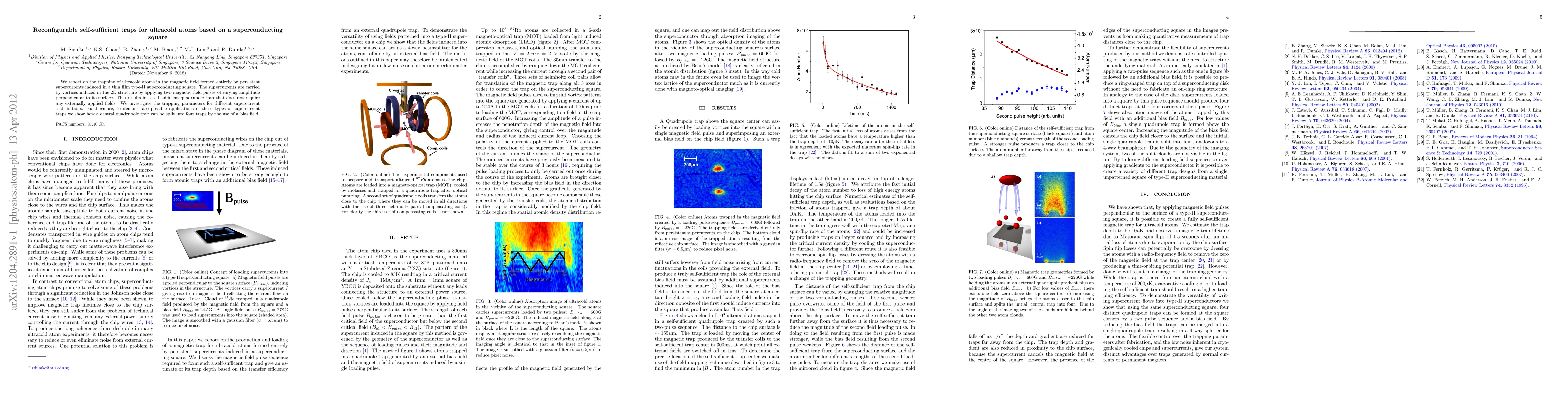 This paper presents a method to trap ultracold atoms using persistent supercurrents in a superconducting square, forming a self-sufficient quadrupole trap without external magnetic fields. The researchers demonstrate trap configurability by splitting a central quadrupole trap into four smaller traps using a bias field.