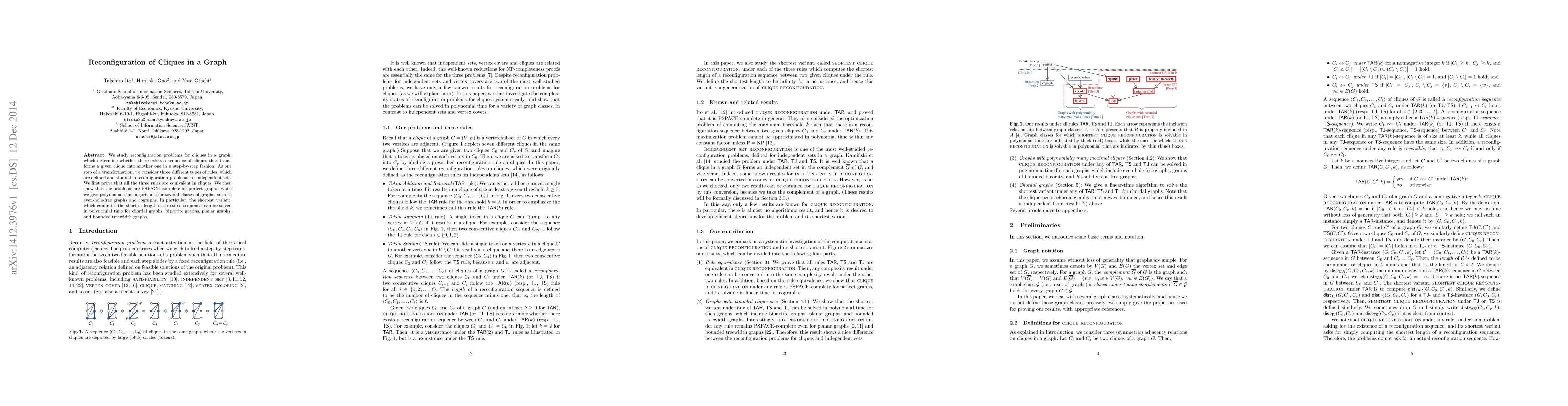 A graph's clique reconfiguration problem determines if a transformation sequence exists to change one clique into another. Polynomial-time solutions exist for specific graph classes, but the problem remains PSPACE-complete for perfect graphs.