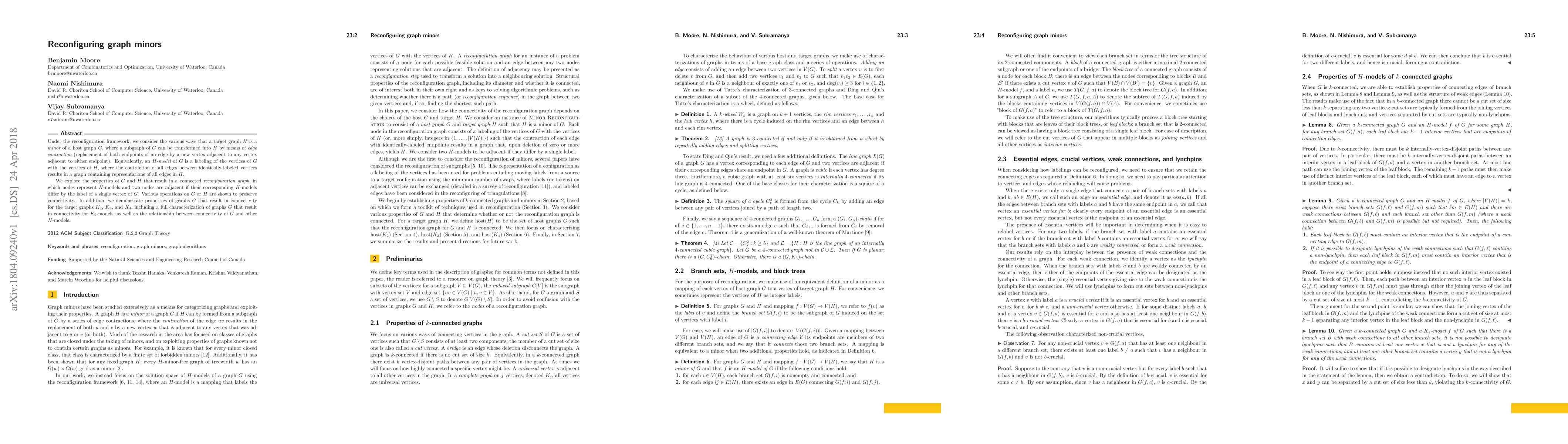 This paper investigates how a target graph $H$ can be a minor of a host graph $G$ through reconfiguration by edge contraction, focusing on the connectivity of the reconfiguration graph formed by $H$-models. It characterizes conditions under which the reconfiguration graph remains connected and explores specific cases for $K_2$, $K_3$, and $K_4$ as target graphs.