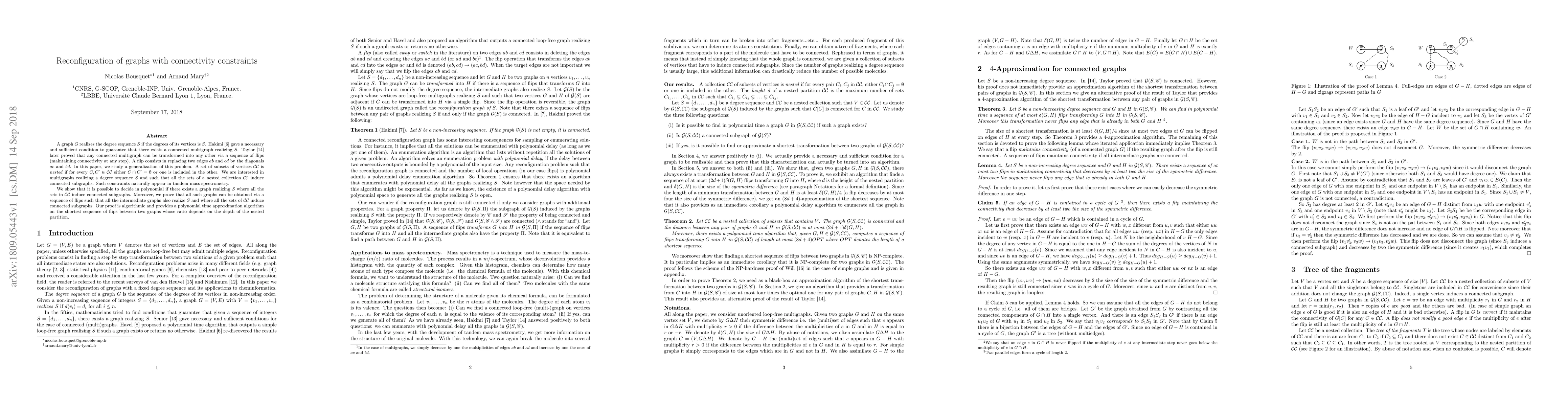 A graph $G$ realizes the degree sequence $S$ if the degrees of its vertices is $S$. Hakimi gave a necessary and sufficient condition to guarantee that there exists a connected multigraph realizing $S$. Taylor later proved that any connected multigraph can be transformed into any other via a sequence of flips (maintaining connectivity at any step). A flip consists in replacing two edges $ab$ and $cd$ by the diagonals $ac$ and $bd$. In this paper, we study a generalization of this problem. A set of subsets of vertices $\mathcal{CC}$ is \emph{nested} if for every $C,C' \in \mathcal{CC}$ either $C \cap C' = \emptyset$ or one is included in the other. We are interested in multigraphs realizing a degree sequence $S$ and such that all the sets of a nested collection $\mathcal{CC}$ induce connected subgraphs. Such constraints naturally appear in tandem mass spectrometry. We show that it is possible to decide in polynomial if there exists a graph realizing $S$ where all the sets in $\mathcal{CC}$ induce connected subgraphs. Moreover, we prove that all such graphs can be obtained via a sequence of flips such that all the intermediate graphs also realize $S$ and where all the sets of $\mathcal{CC}$ induce connected subgraphs. Our proof is algorithmic and provides a polynomial time approximation algorithm on the shortest sequence of flips between two graphs whose ratio depends on the depth of the nested partition.