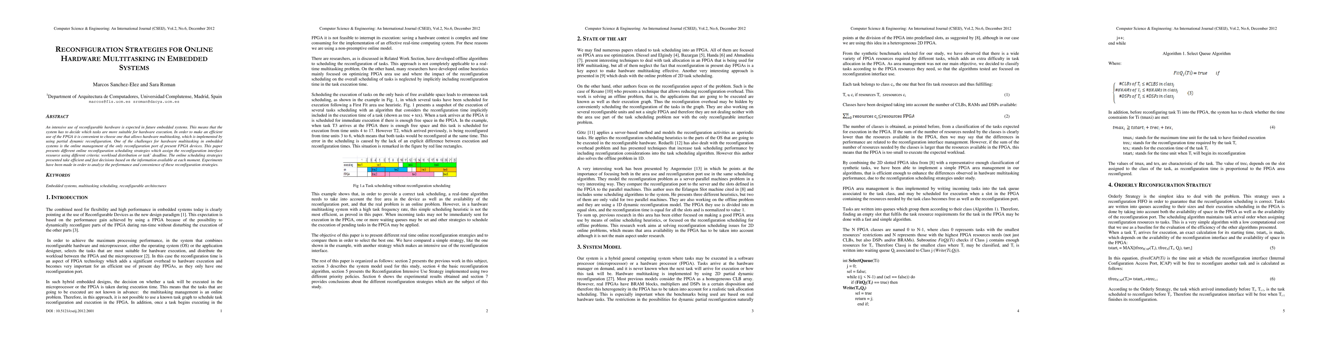 This paper proposes online reconfiguration scheduling strategies for hardware multitasking in embedded systems, aiming to optimize FPGA reconfigurations based on workload distribution or task deadlines.