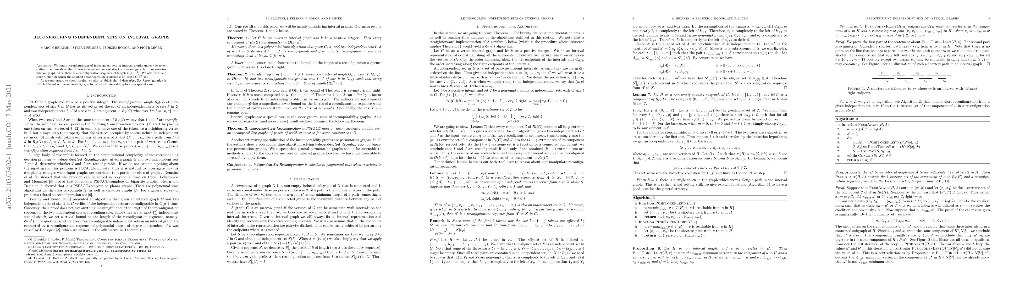 This paper investigates the reconfiguration of independent sets in interval graphs using the token sliding rule, demonstrating a reconfiguration sequence length of $\mathcal{O}(k\cdot n^2)$ and presenting a construction where the shortest sequence is $\Omega(k^2\cdot n)$. Additionally, it proves that Independent Set Reconfiguration is PSPACE-hard for incomparability graphs, a broader class that includes interval graphs.