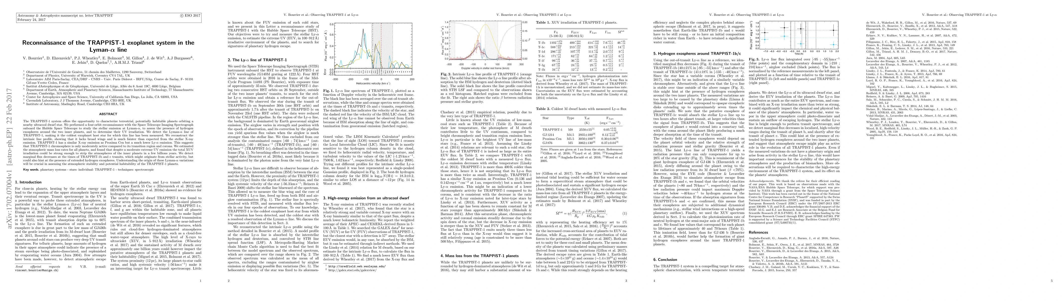 The TRAPPIST-1 system offers the opportunity to characterize terrestrial, potentially habitable planets orbiting a nearby ultracool dwarf star. We performed a four-orbit reconnaissance with the Space Telescope Imaging Spectrograph onboard the Hubble Space Telescope to study the stellar emission at Lyman-$\alpha$, to assess the presence of hydrogen exospheres around the two inner planets, and to determine their UV irradiation. We detect the Lyman-$\alpha$ line of TRAPPIST-1, making it the coldest exoplanet host star for which this line has been measured. We reconstruct the intrinsic line profile, showing that it lacks broad wings and is much fainter than expected from the stellar X-ray emission. TRAPPIST-1 has a similar X-ray emission as Proxima Cen but a much lower Ly-$\alpha$ emission. This suggests that TRAPPIST-1 chromosphere is only moderately active compared to its transition region and corona. We estimated the atmospheric mass loss rates for all planets, and found that despite a moderate extreme UV emission the total XUV irradiation could be strong enough to strip the atmospheres of the inner planets in a few billions years. We detect marginal flux decreases at the times of TRAPPIST-1b and c transits, which might originate from stellar activity, but could also hint at the presence of extended hydrogen exospheres. Understanding the origin of these Lyman-$\alpha$ variations will be crucial in assessing the atmospheric stability and potential habitability of the TRAPPIST-1 planets.