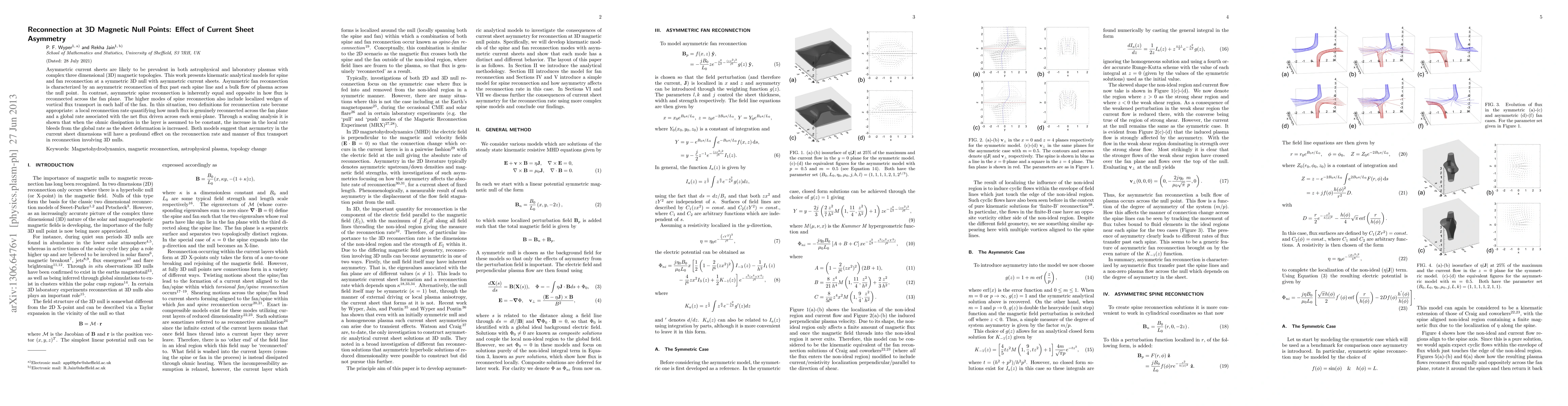 This paper investigates kinematic models for spine and fan reconnection at 3D magnetic null points with asymmetric current sheets, showing that asymmetry affects both the local and global reconnection rates, with implications for flux transport and plasma dynamics in astrophysical and laboratory plasmas.