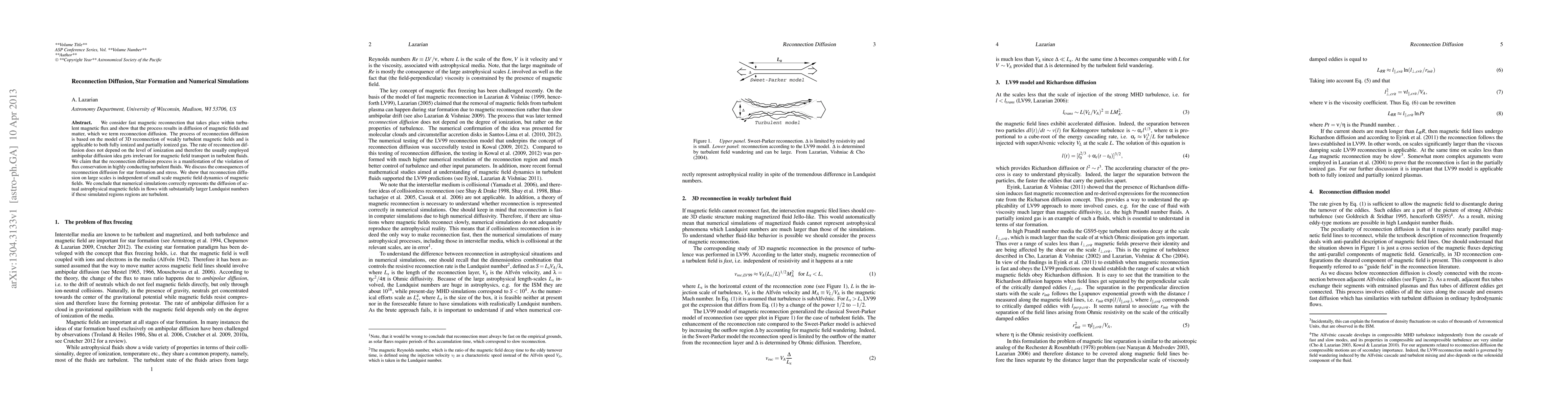 This paper explores the concept of reconnection diffusion, a process where magnetic reconnection within turbulent magnetic flux leads to the diffusion of magnetic fields and matter, independent of ionization levels. The authors argue that this process, rather than ambipolar diffusion, governs magnetic field transport in turbulent fluids and has significant implications for star formation.