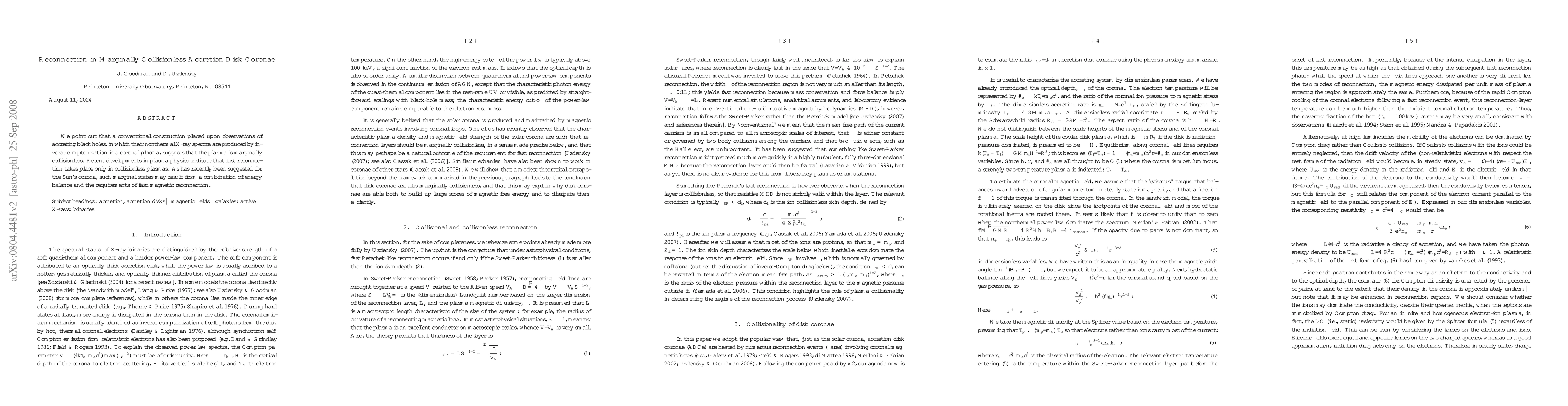 This paper discusses the marginal collisionless nature of plasma in accretion disk coronae around black holes, suggesting that fast magnetic reconnection, as seen in collisionless plasmas, may be driven by energy balance and the need for efficient reconnection. The findings imply a new perspective on the mechanisms generating nonthermal X-ray spectra in these systems.