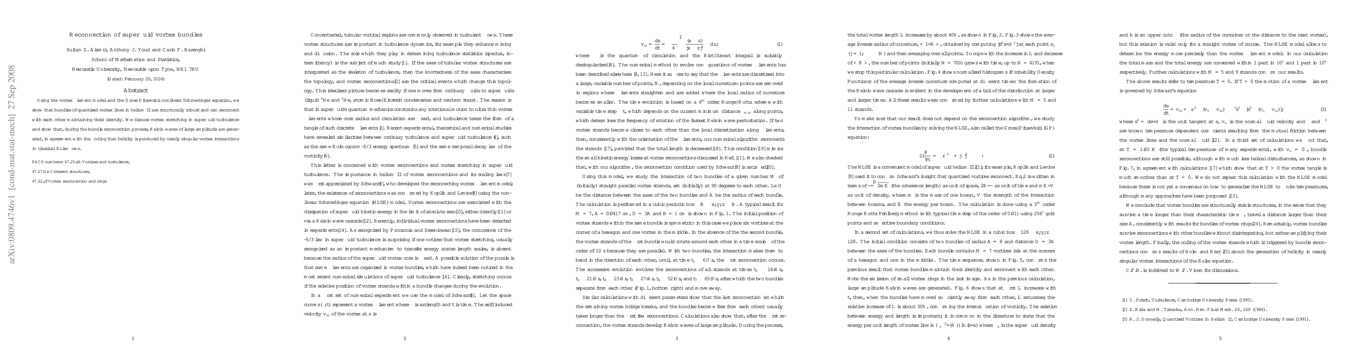 This paper demonstrates that bundles of quantized vortices in helium II can reconnect while preserving their structure, using the vortex filament model and Gross Pitaevskii equation. It also reveals that vortex stretching in superfluid turbulence generates Kelvin waves of large amplitude during reconnection, aligning with the production of helicity in nearly singular vortex interactions.