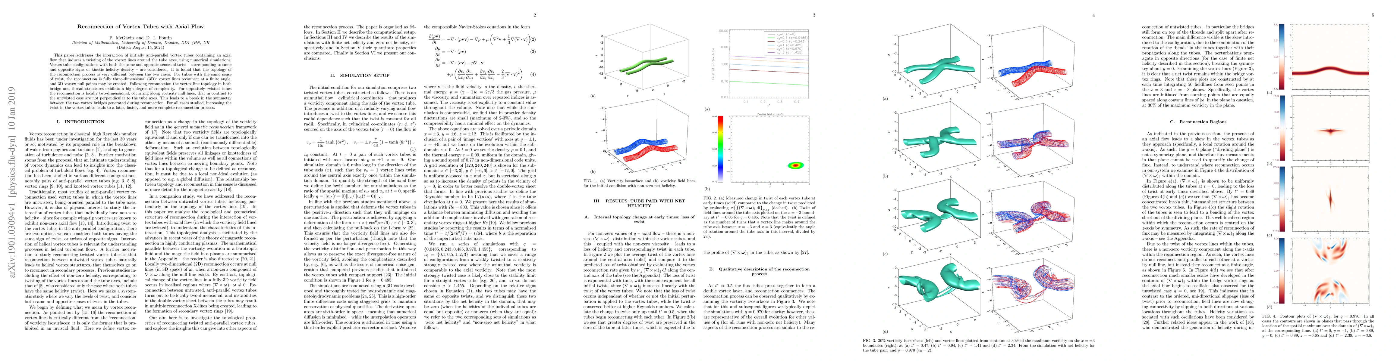The study employs numerical simulations to investigate vortex tube reconnection in complex fluid flows, utilizing advanced computational techniques for detailed analysis.
