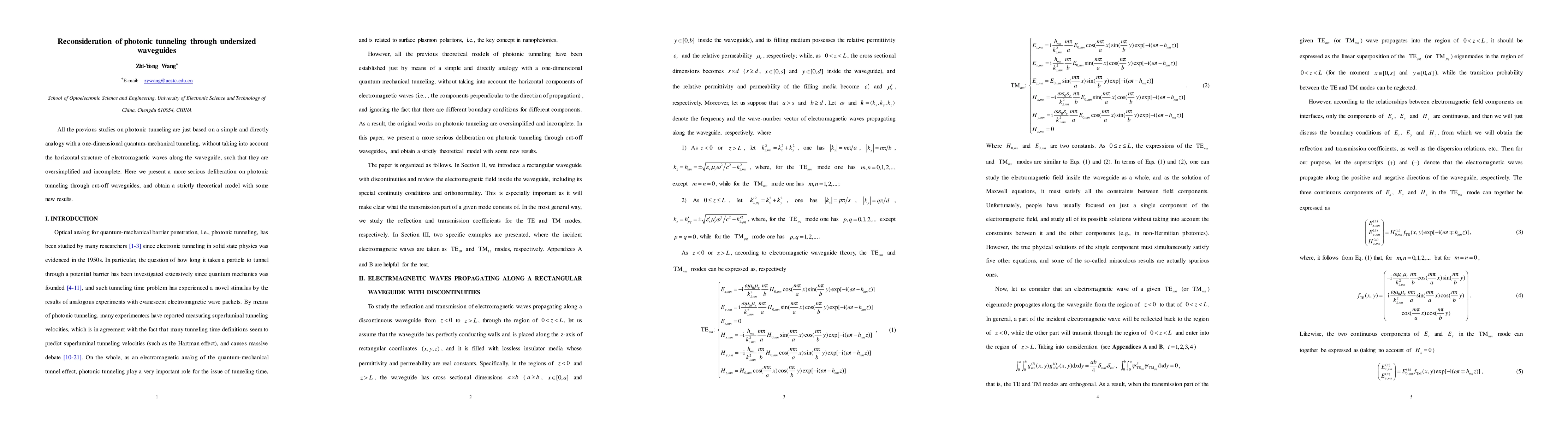 This paper challenges previous simplistic views of photonic tunneling, emphasizing the neglect of electromagnetic wave horizontal structure. It introduces a rigorous theoretical model, yielding new insights into tunneling through undersized waveguides.