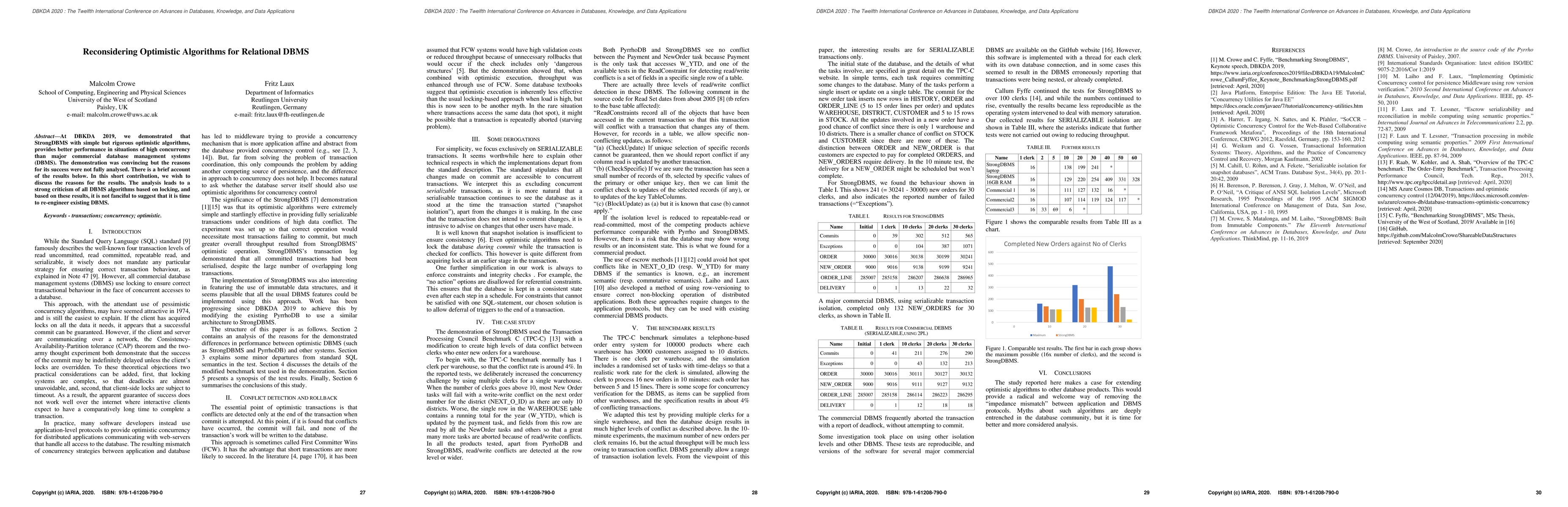 This paper revisits the superior performance of StrongDBMS under high concurrency, attributing its success to simple optimistic algorithms rather than traditional locking-based approaches, and argues for a re-evaluation and potential re-engineering of existing database management systems.