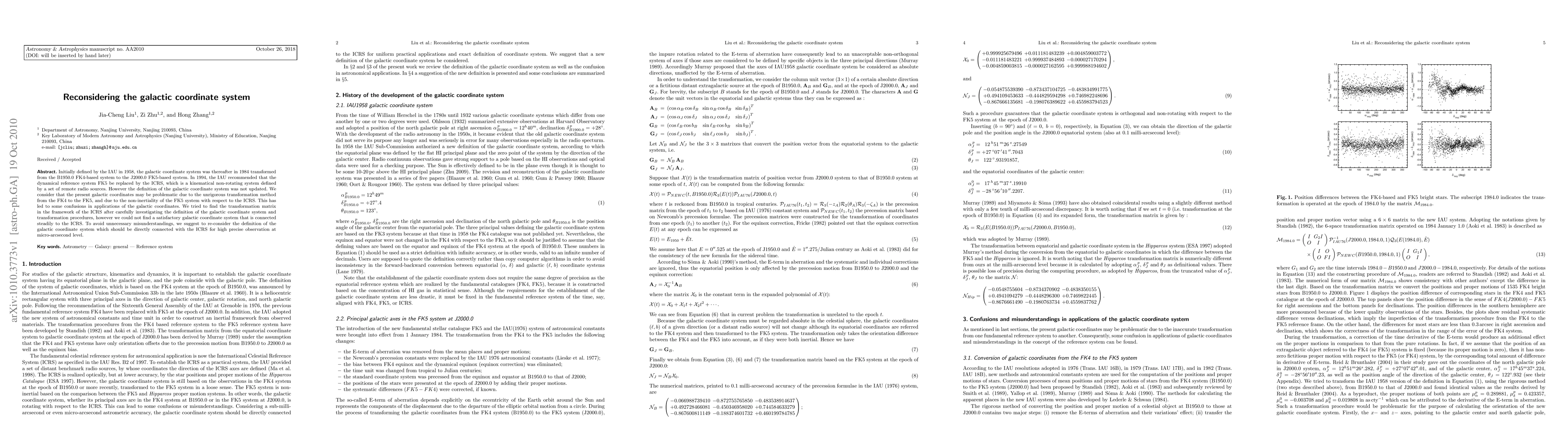 This paper discusses the issues with the current galactic coordinate system, stemming from its outdated transformation from FK4 to FK5 and its non-inertiality relative to the ICRS. The authors propose reconsidering the definition of the galactic coordinate system to ensure it is directly connected to the ICRS for high-precision observations.