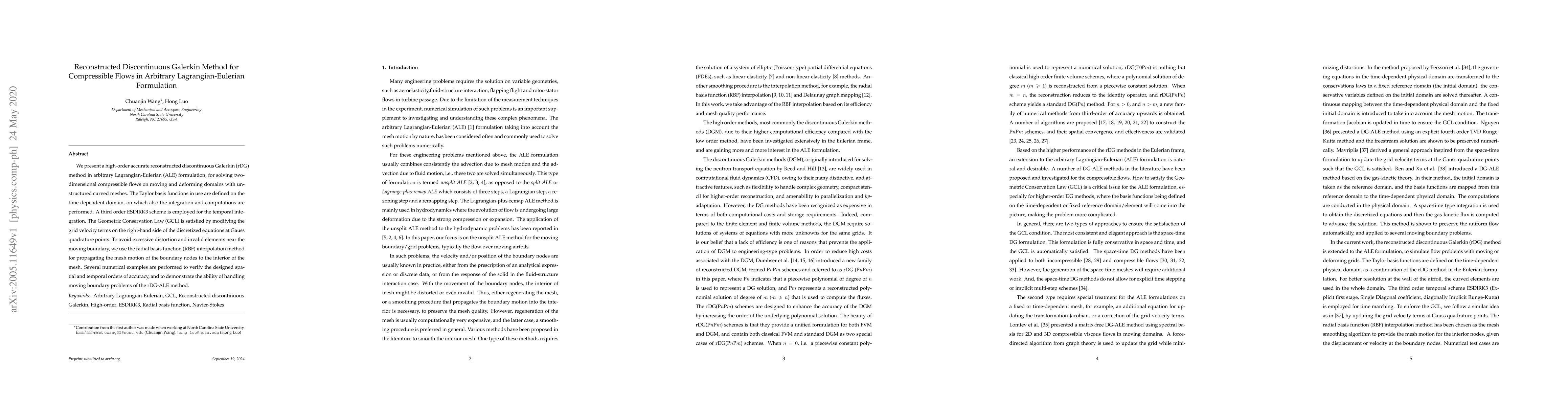 This paper introduces a high-order reconstructed discontinuous Galerkin method in arbitrary Lagrangian-Eulerian formulation for solving two-dimensional compressible flows on moving domains. The method employs a third-order ESDIRK3 scheme and radial basis function interpolation to handle mesh deformation, demonstrating accuracy and effectiveness through numerical examples.