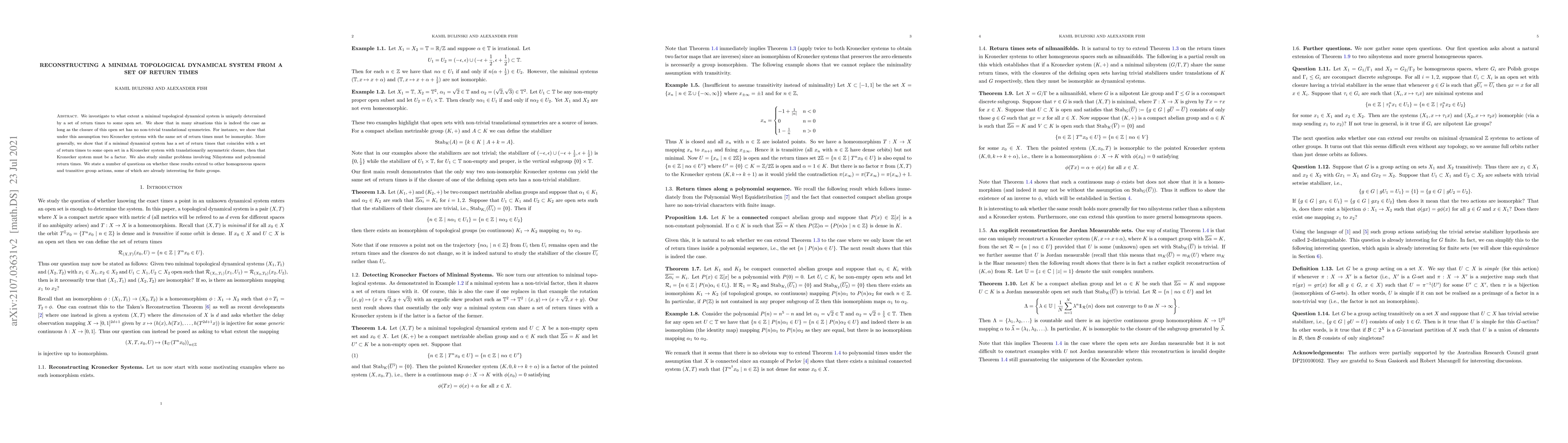 A minimal topological dynamical system is uniquely determined by a set of return times to some open set if the closure has no non-trivial translational symmetries.