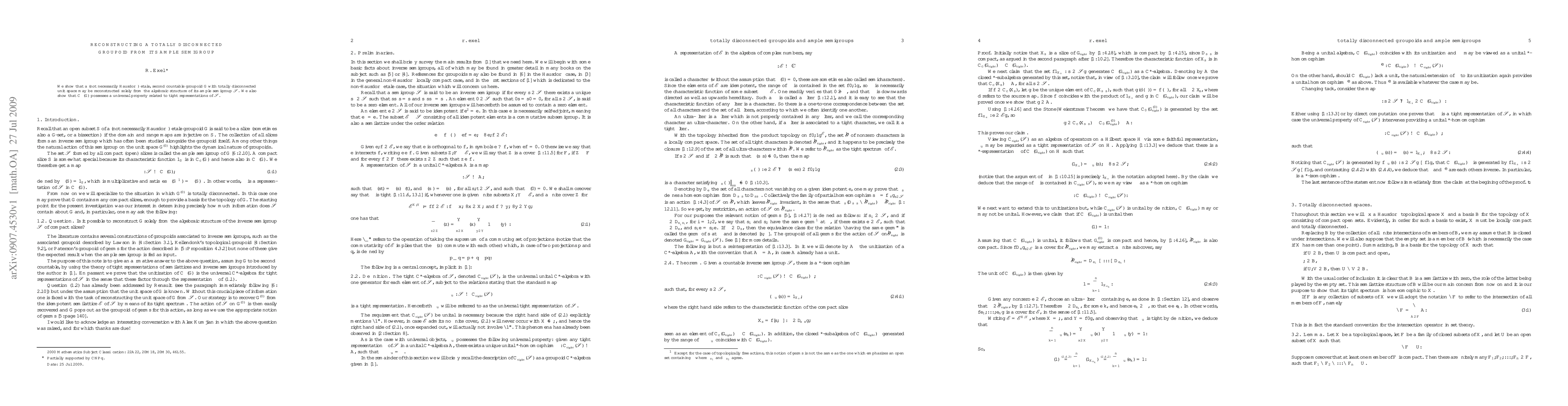 This paper demonstrates the reconstruction of a second countable, totally disconnected groupoid G from its ample semigroup S, emphasizing the algebraic structure. Additionally, it establishes a universal property for C*(G) concerning tight representations of S.