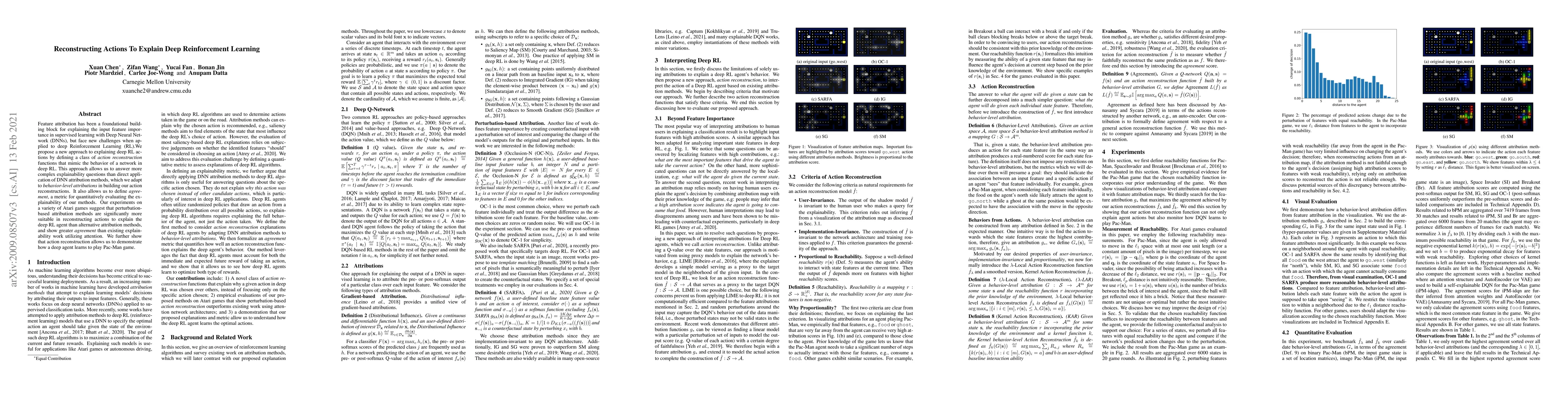 This paper proposes a new method for explaining deep reinforcement learning (RL) actions through action reconstruction functions, which mimic the behavior of RL networks. It introduces behavior-level attributions and a metric called agreement to evaluate the explainability, demonstrating that perturbation-based attribution methods outperform others in reconstructing actions and explaining RL agents.