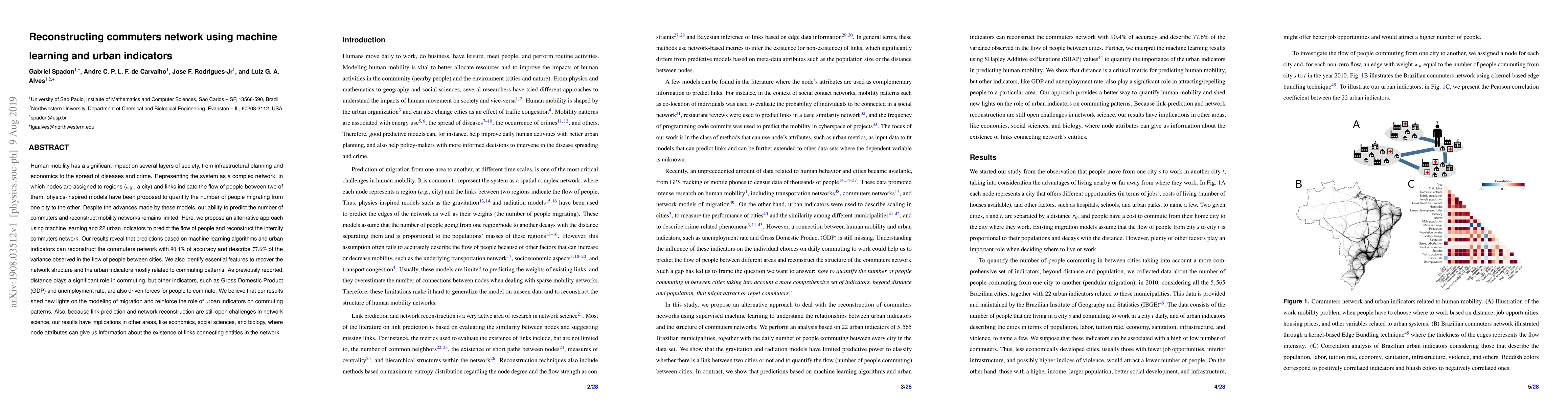 This paper proposes a machine learning approach using 22 urban indicators to predict and reconstruct intercity commuters networks with 90.4% accuracy, highlighting the importance of factors like GDP and unemployment in commuting patterns beyond distance. The findings have broader implications for network science and related fields.